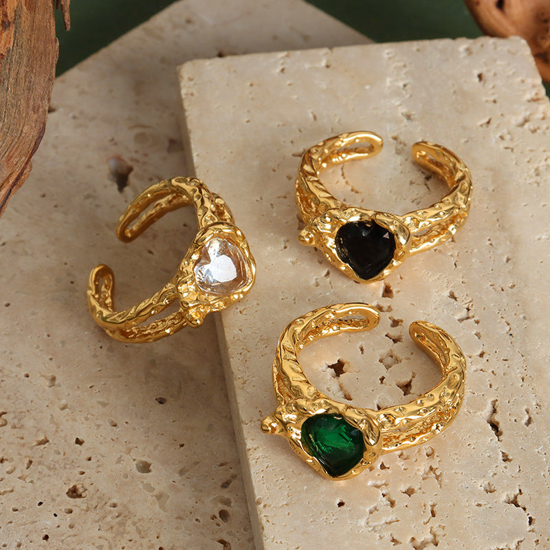 Emerald Love Hip-Hop Ring - Titanium Steel Gold-Plated Jewelry