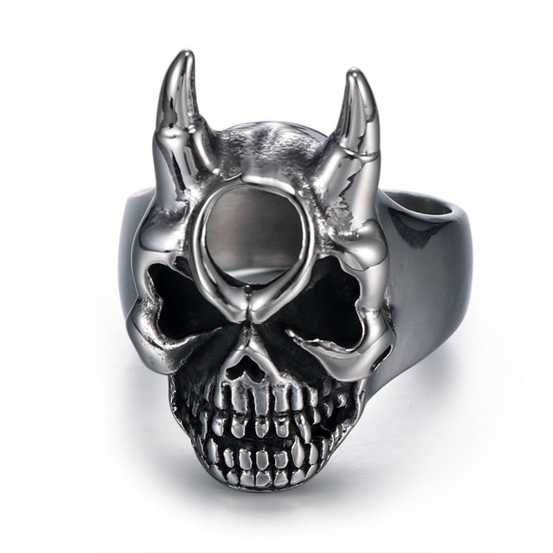Vintage-Inspired Men's Skull Ring in Titanium Steel – Punk Style Jewelry for Men