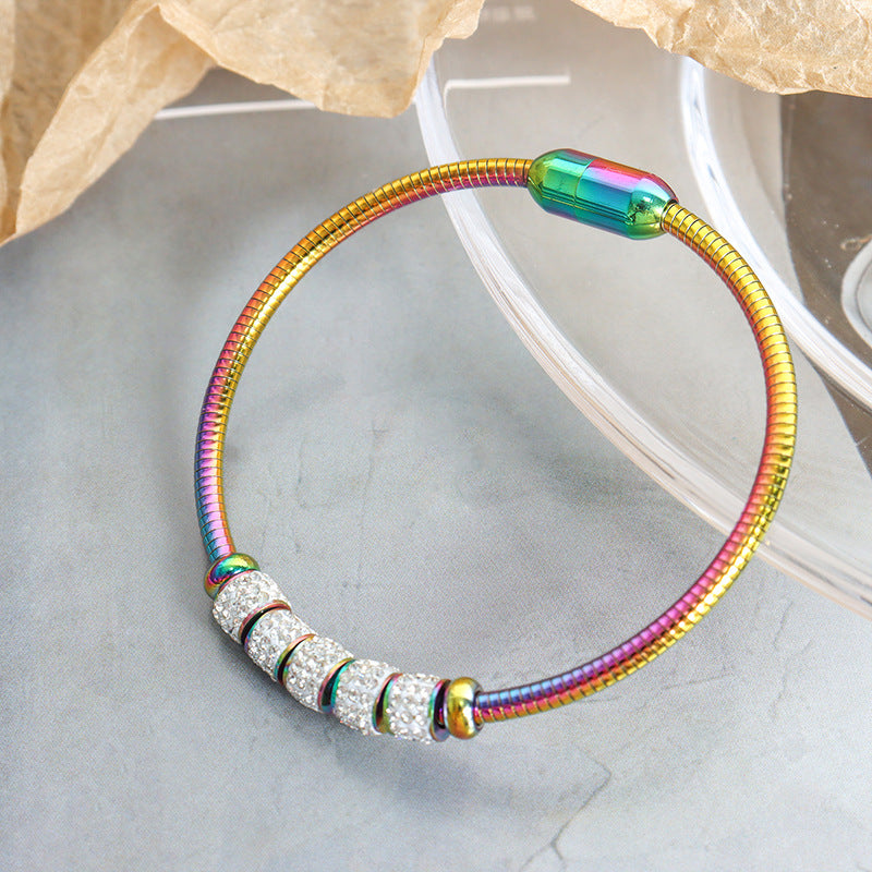 Elegant Rhinestone-Embellished Gold Bracelet with Magnetic Stainless Steel Clasp