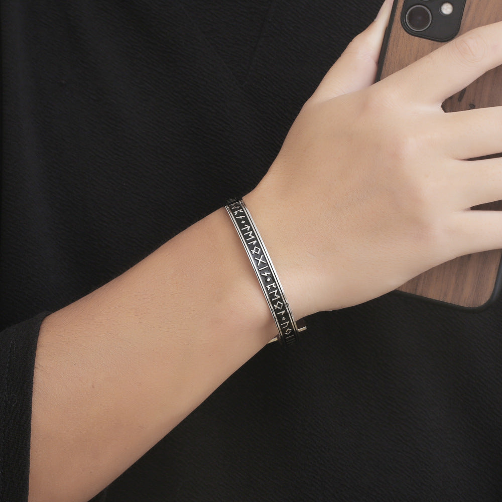 Unleash your inner warrior with the European and American Viking Rune Men's Open Bracelet. This striking piece combines modern style with ancient symbolism, making it a perfect accessory for the bold and adventurous man.
