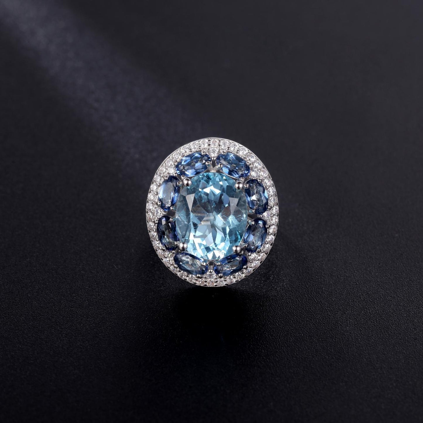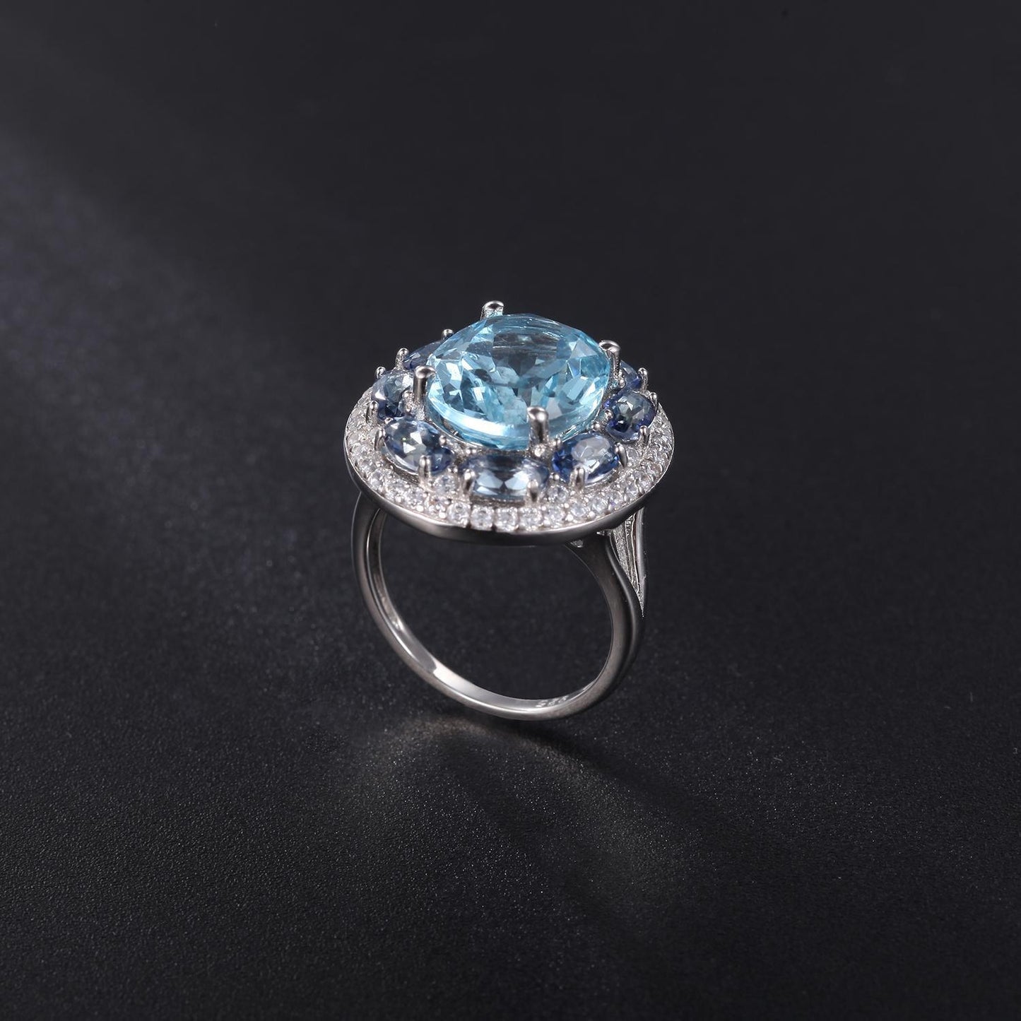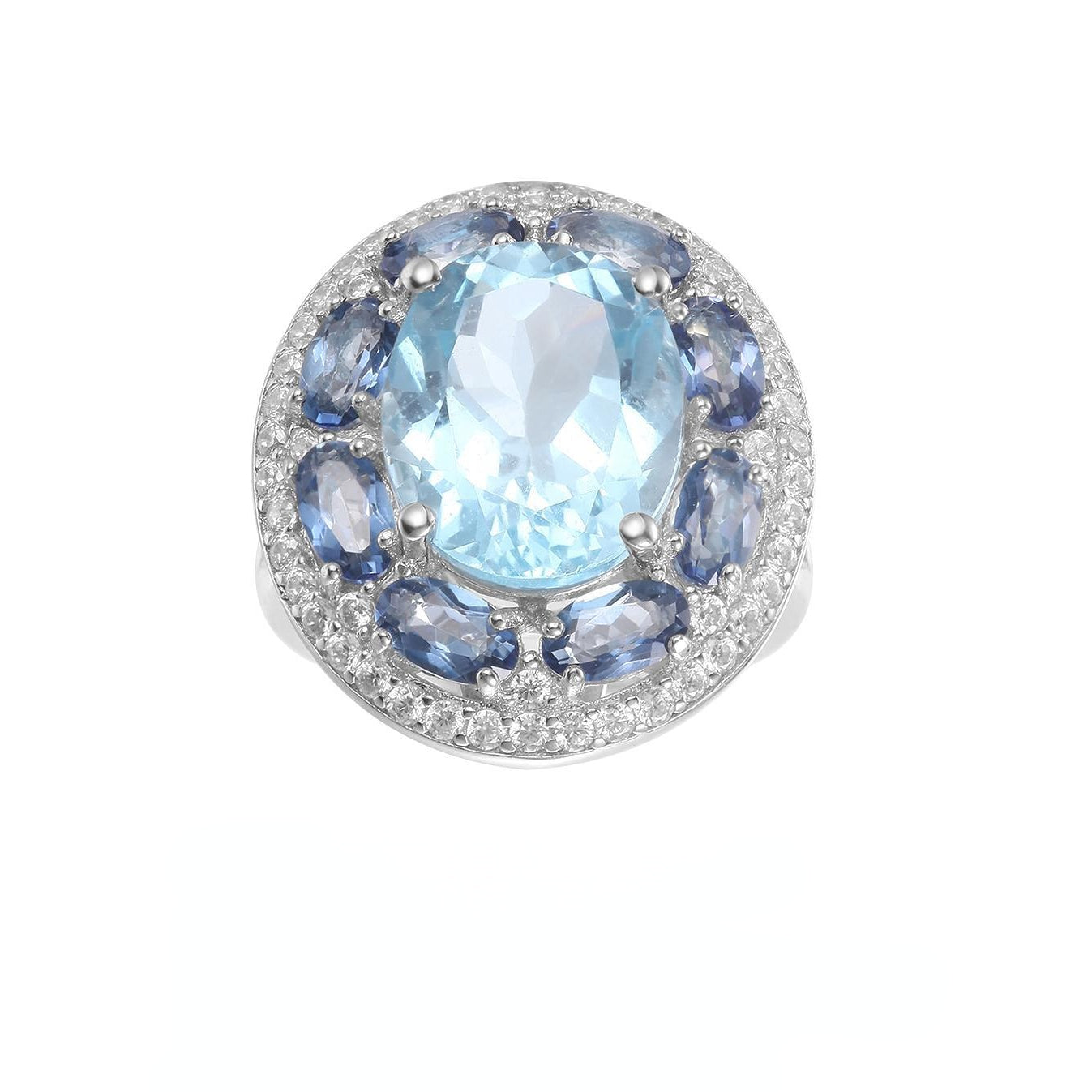 European and American Fashion Temperament with Natural Topaz Soleste Halo Silver Ring for Women