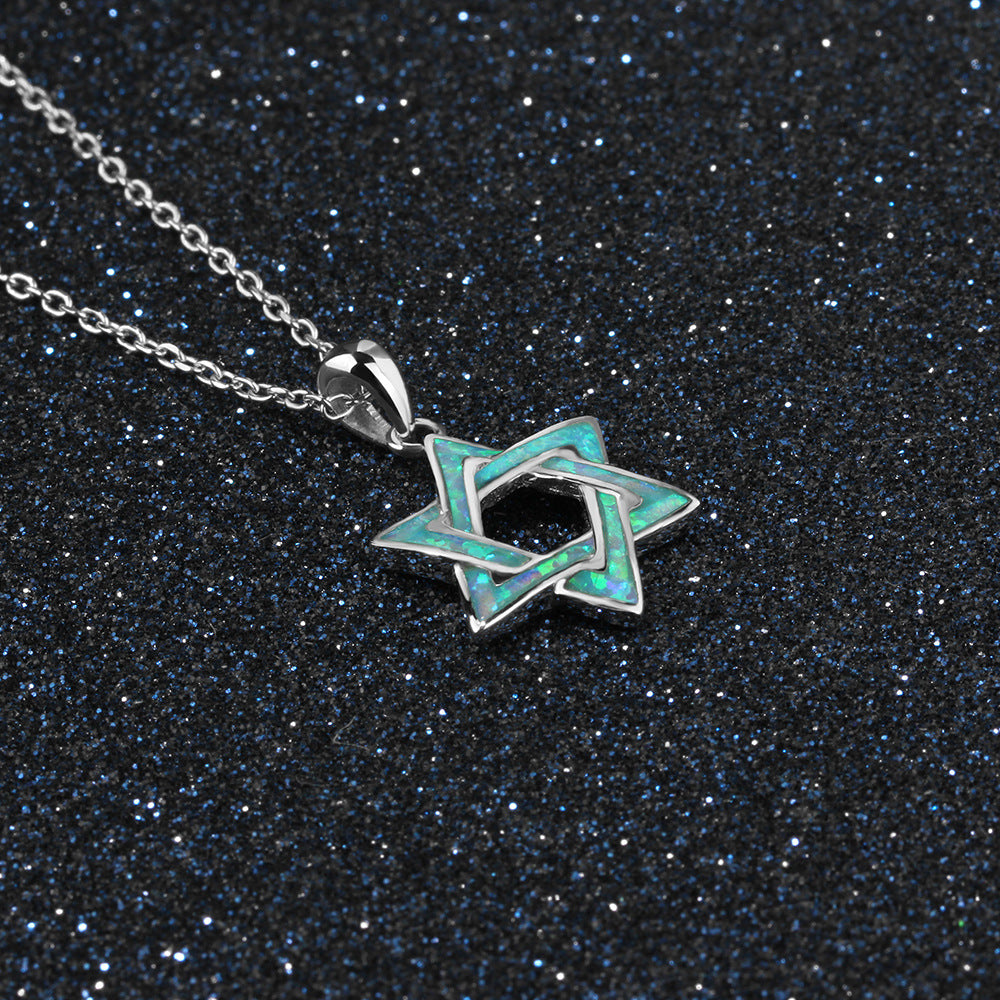 Elevate your look with our exquisite Ocean Romance blue opal hexagonal star sterling silver necklace. Crafted from fine sterling silver, featuring a stunningly delicated hollow out star-shaped pendant adorned with beautiful blue opal, let you feel the romance of the ocean, and this luxurious necklace is sure to be a treasured favorite.