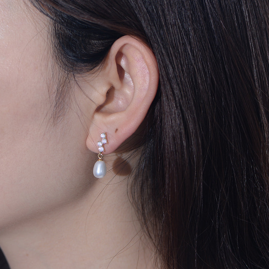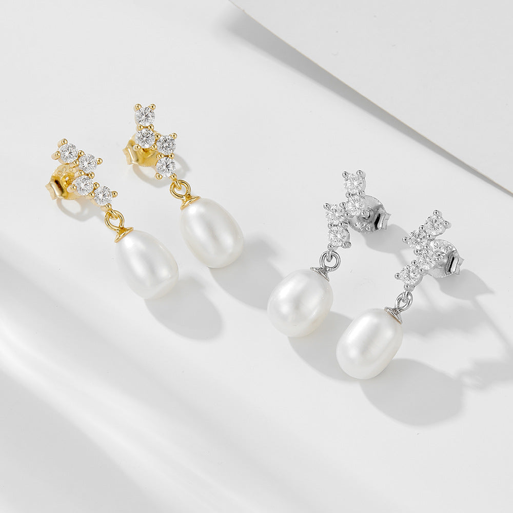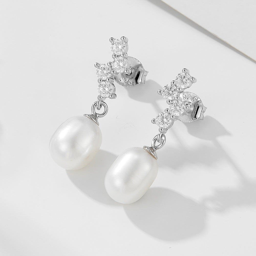 Exquisitely crafted with a sterling silver and featuring an exquisite oval freshwater pearl pendant adorned with delicate round zircons, these elegant drop earrings are perfect for any occasion. Enjoy a touch of luxury and sophistication with these timeless and exquisite earrings.
