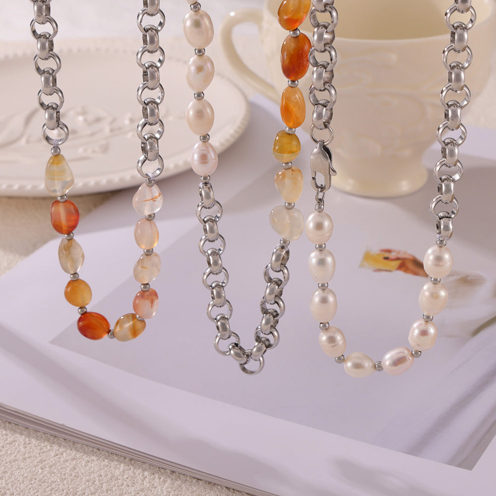 Chic Handcrafted Necklace with Freshwater Pearls and Natural Stones