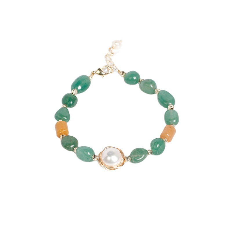 Elevate your style with this Korean version of a simple and personality-driven bracelet that exudes a cold wind aesthetic, making it a perfect addition to any outfit. The bracelet features exquisite freshwater pearls and the captivating allure of aventurine stone, adding a touch of sophistication and charm to your look. Embrace the allure of this unique design, perfectly suited for girlfriends and anyone with a penchant for niche fashion.