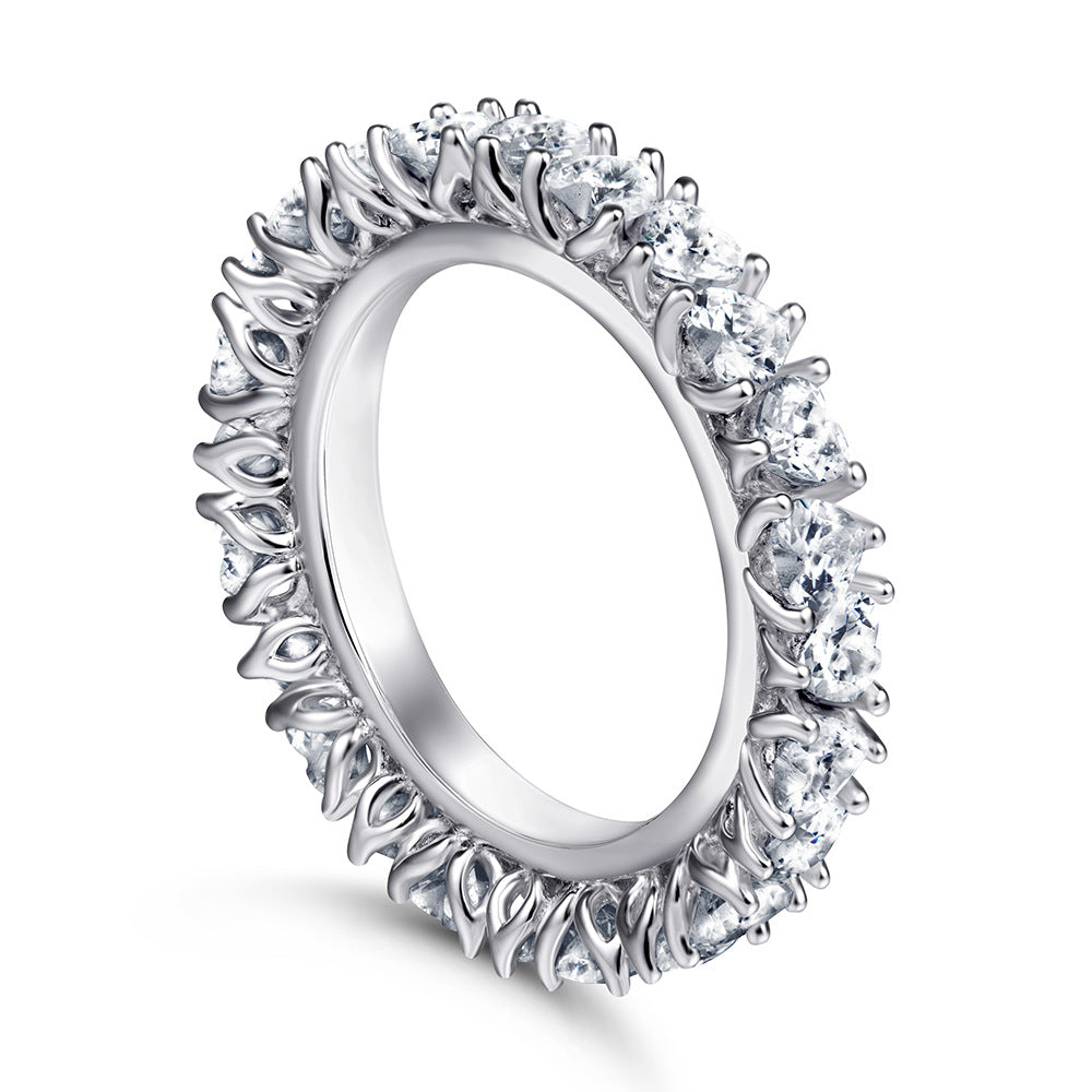This Full Circle Heart-shaped Zircon Silver Ring for Women is crafted with stunning heart-shaped zircon stones of classic brilliance. Featuring an elegantly designed compose with heart-shape zircons of full circle setting, this precious ring is sure to add sparkle and sophistication to any look.