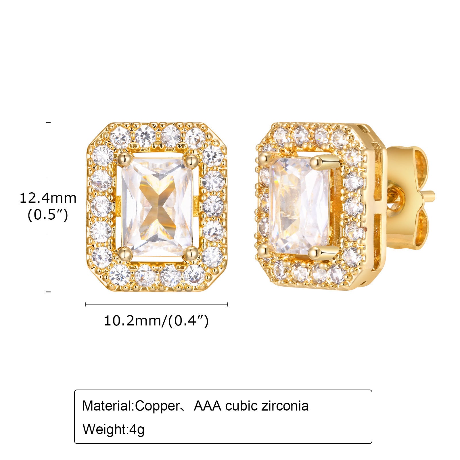 Discover the elegance of our Full of zircon square square geometric stud earrings 15K gold copper women's earrings wholesale. These stunning earrings are crafted from high-quality copper, adorned with sparkling zircon stones that catch the light beautifully. Perfect for adding a touch of sophistication to any outfit, these geometric stud earrings are designed to make a statement.