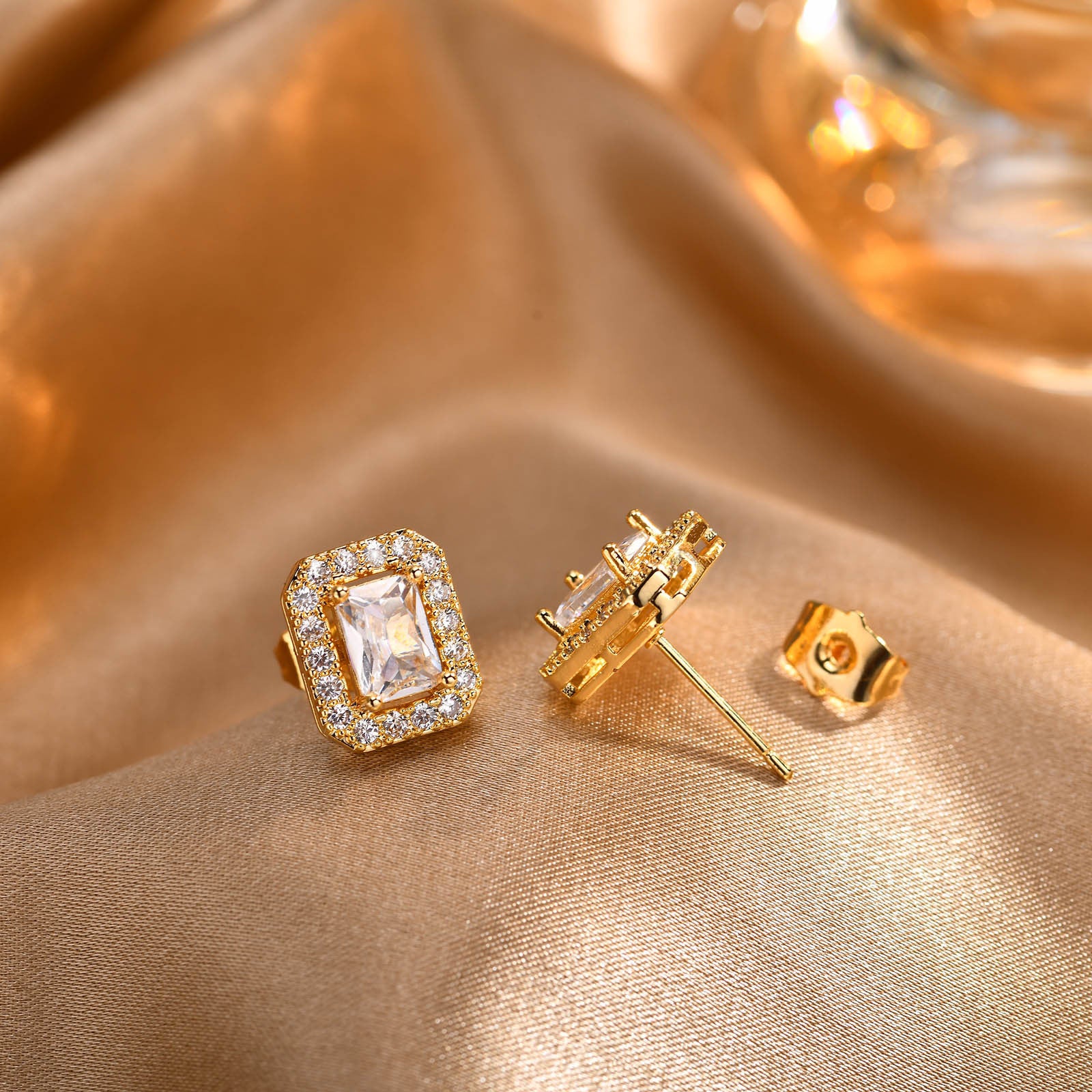 Full Of Zircon Square Geometric Stud Earrings 15K Gold Copper