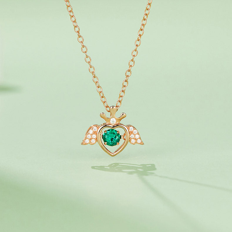 This Rose Gold Colour Little Wing with Round Green Zircon Necklace is a beautiful, timeless piece. Featuring an elegant heart-shape pendant with Little Wings, and decorate with a round Green Zircon in center. Crafted in sterling silver plated in rose gold, this necklace instantly elevates any look with its classic, sophisticated design.