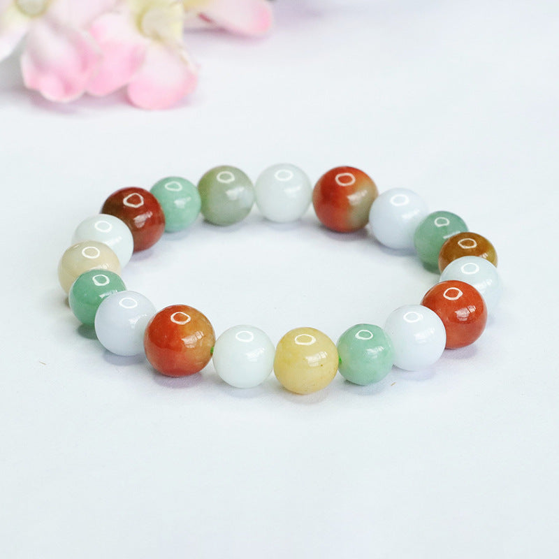 Step into the world of exquisite beauty and unparalleled craftsmanship with our Colorful Jade Bracelet. Handcrafted with genuine natural Myanmar A Goods jade, this bracelet exudes a captivating allure that is as timeless as it is mesmerizing.