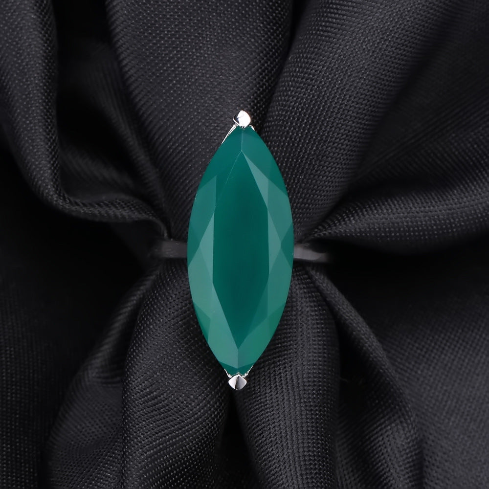 European and American Fashion Inlaid Horse Eye Natural Green Agate S925 Sterling Silver Ring for Women