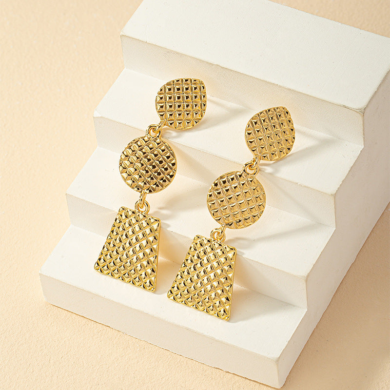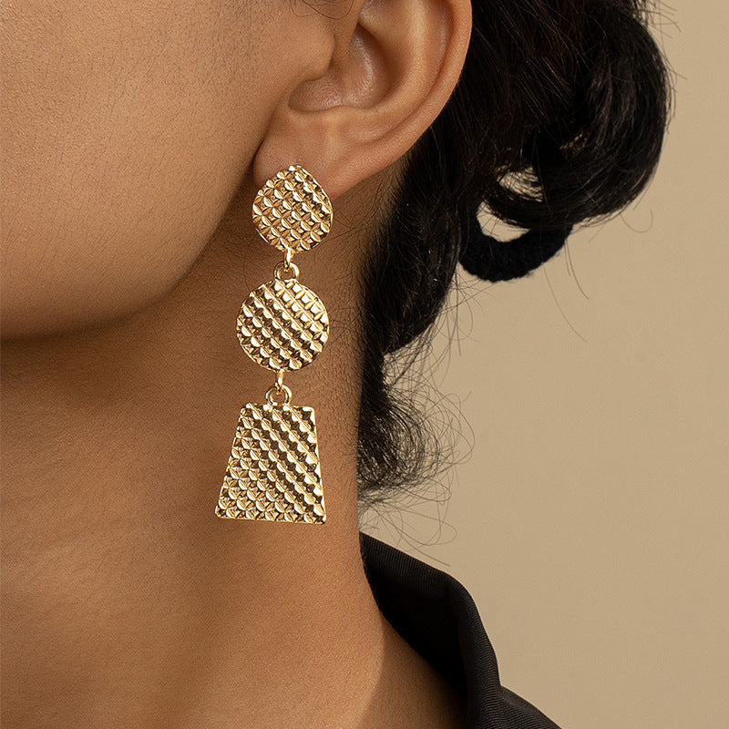 • Embrace retro charm with a modern twist in the INS style geometric hammered pattern pendant earrings