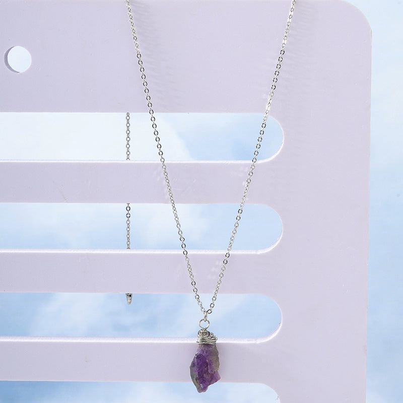 Wholesale Amethyst Stone Pendant Necklace with Unique Metal Chain Design