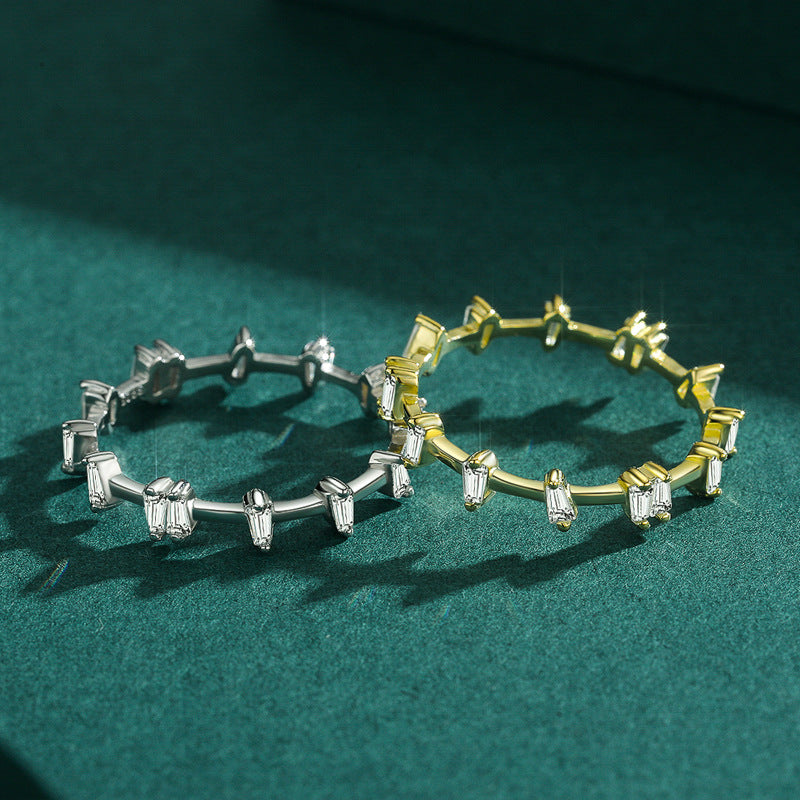 Introducing the Irregular Simulation Diamond Zircon Niche Design Ring, a 925 sterling silver ring designed to elevate your style with its versatile European and American Instagram index finger ring bracelet.