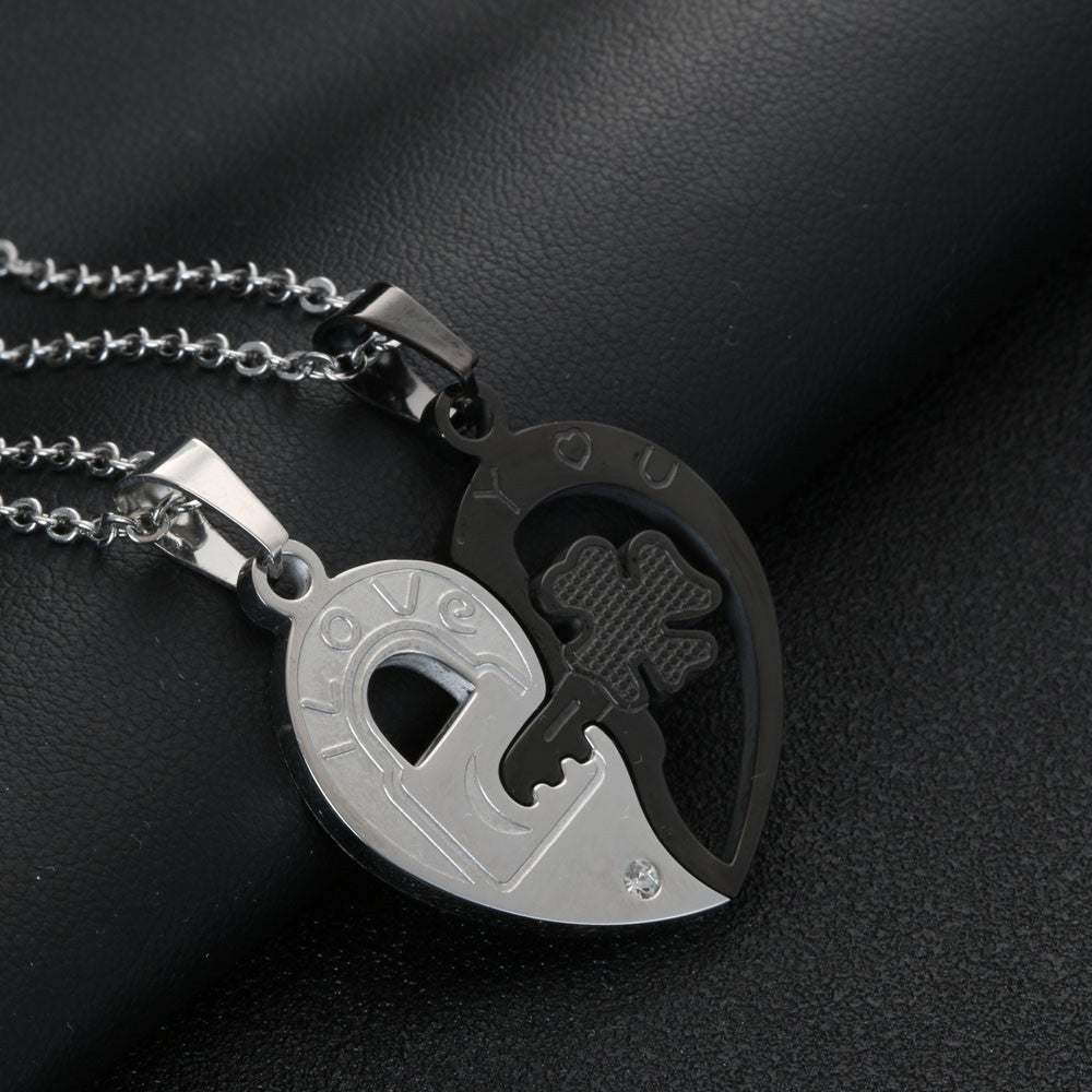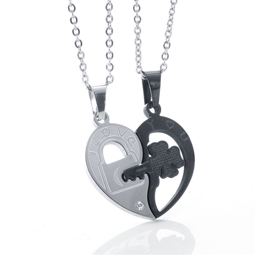 Couple's Titanium Steel Heart and Clover Pendant Set - Inspired by Japanese and Korean Design