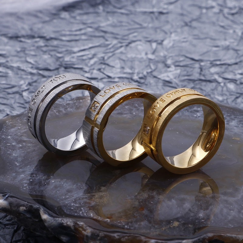 Titanium Steel Love Couple Rings with Micro-Inlaid Zircon - Wholesale Golden Stainless Steel Jewelry for Men