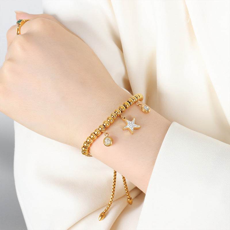 Experience Timeless Elegance with Our Zircon-Encrusted Starfish Pendant Beaded Bracelet