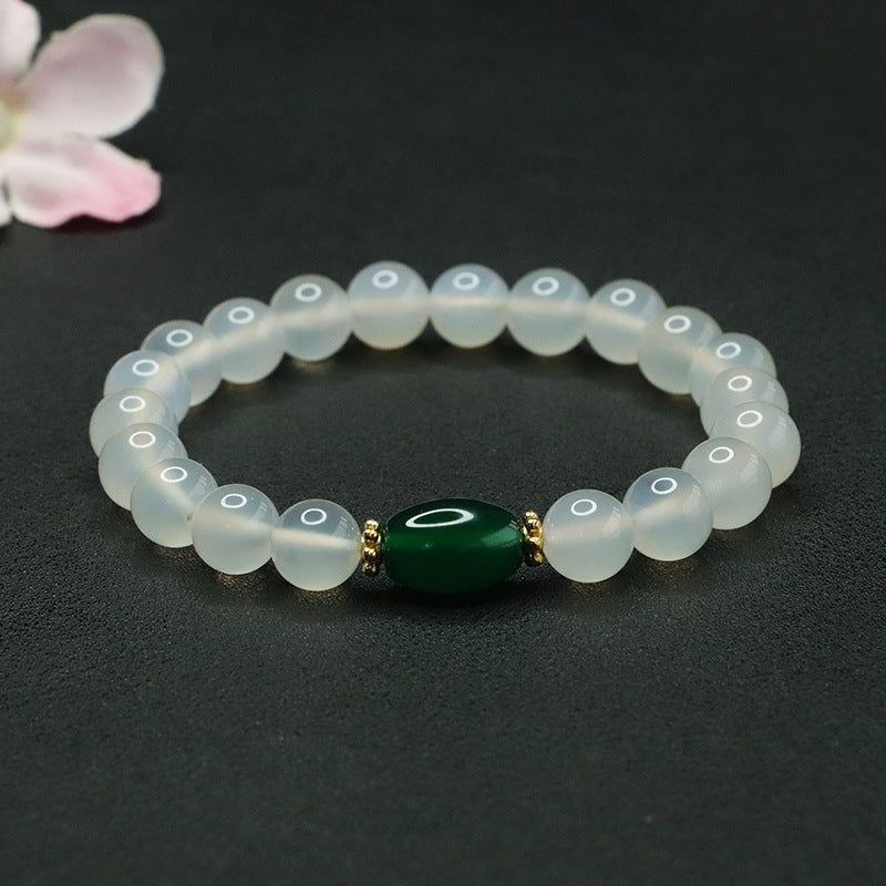 White Chalcedony and Green Agate Sterling Silver Bracelet