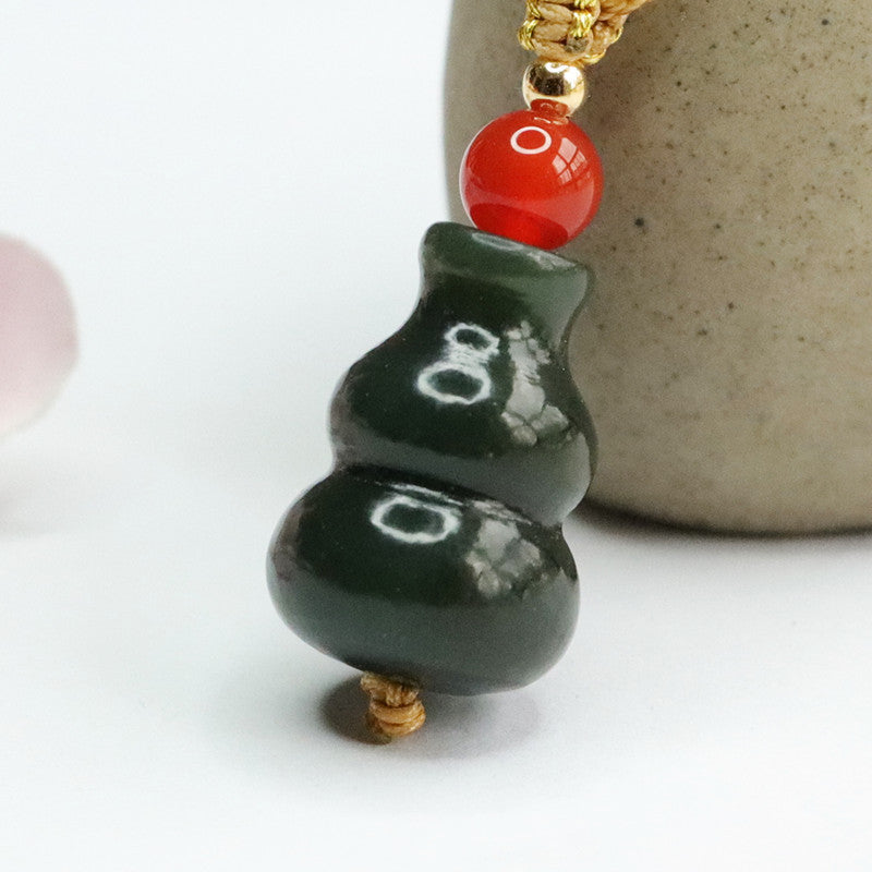 Black Jade Gourd Necklace Made with Natural Hotan Stone