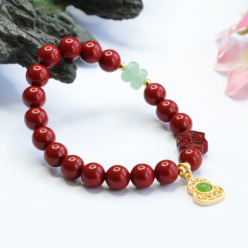 Fortune's Favor Sterling Silver Cinnabar and Jade Gourd Bracelet