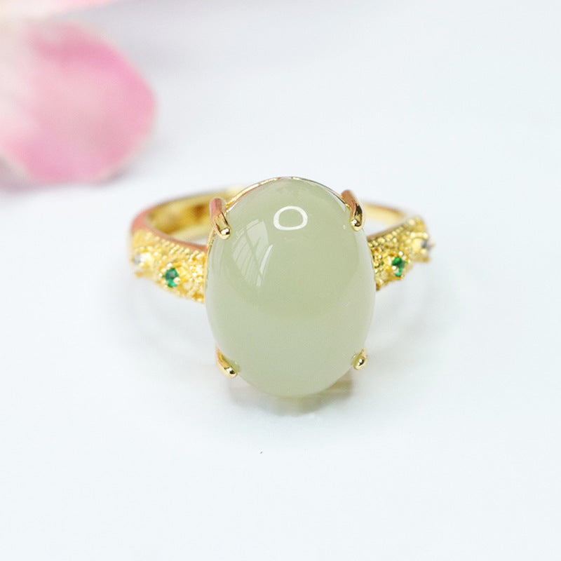 Planderful Collection Pigeon Eggs Hetian Jade Ring: Sterling Silver and Jade Jewelry