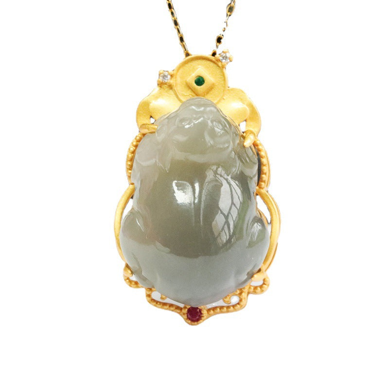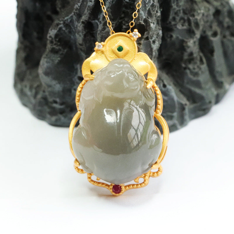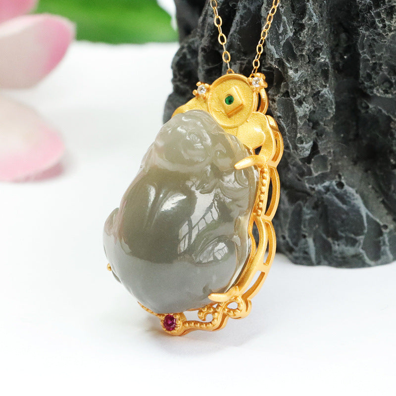 S925 Silver Natural Hotan Jade Pendant, Smoke Purple Pixiu Necklace Jewelry
