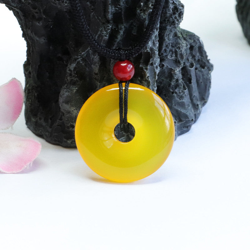 Explore the elegance and protection of our Fortune's Favor Collection with this exquisite Natural Yellow Chalcedony Safety Buckle Pendant by Planderful.