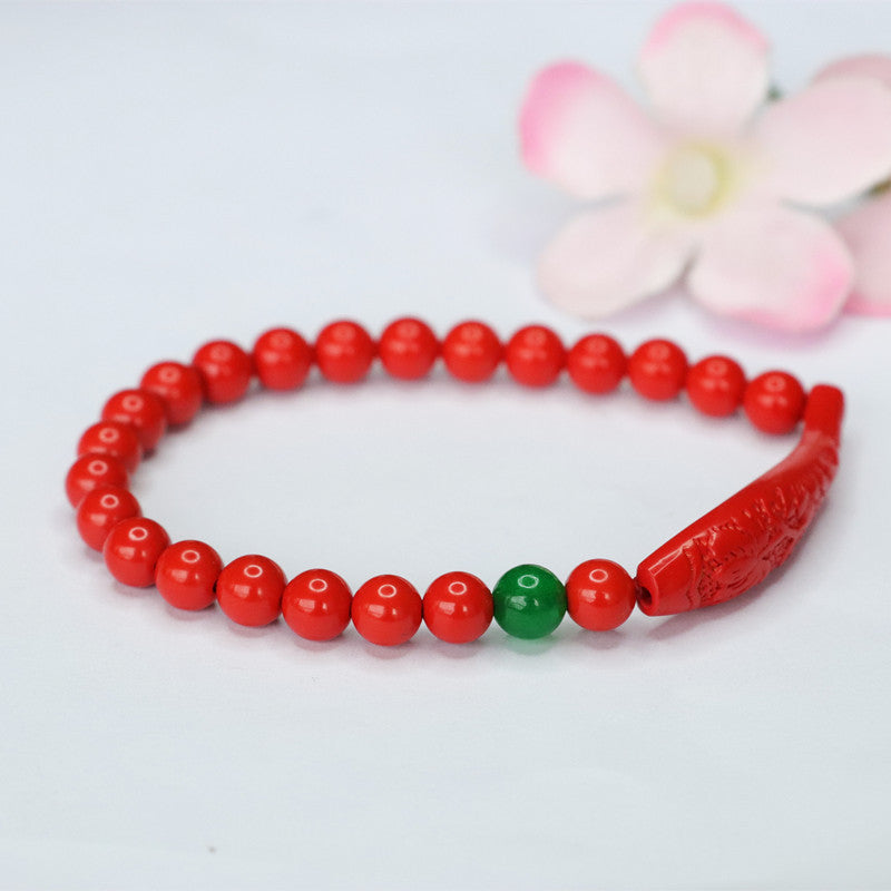 Red Cinnabar Koi Bracelet - Sterling Silver Jewelry