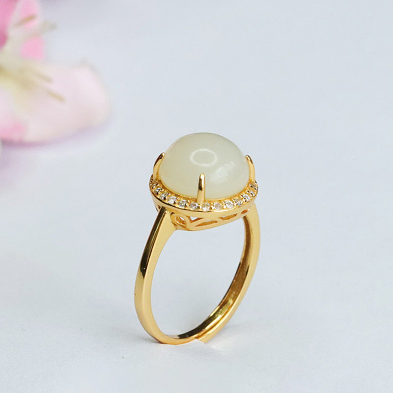 Elevate your style with this exquisite ring that combines the elegance of jade with the brilliance of zircon. The S925 Silver Round Natural Hotan Jade Ring is a true statement piece that embodies beauty and sophistication. Whether for yourself or as a thoughtful gift, this ring is sure to bring a touch of fortune to whoever wears it.