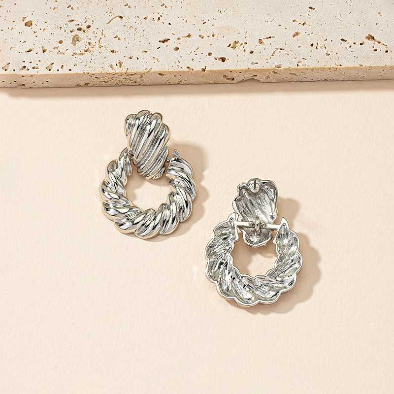 Step into the spotlight with our Vienna Verve collection featuring these stunning retro twist braided earrings. Embrace European and American fashion with these earrings that boast irregular metal twists and exaggerated geometric round designs.