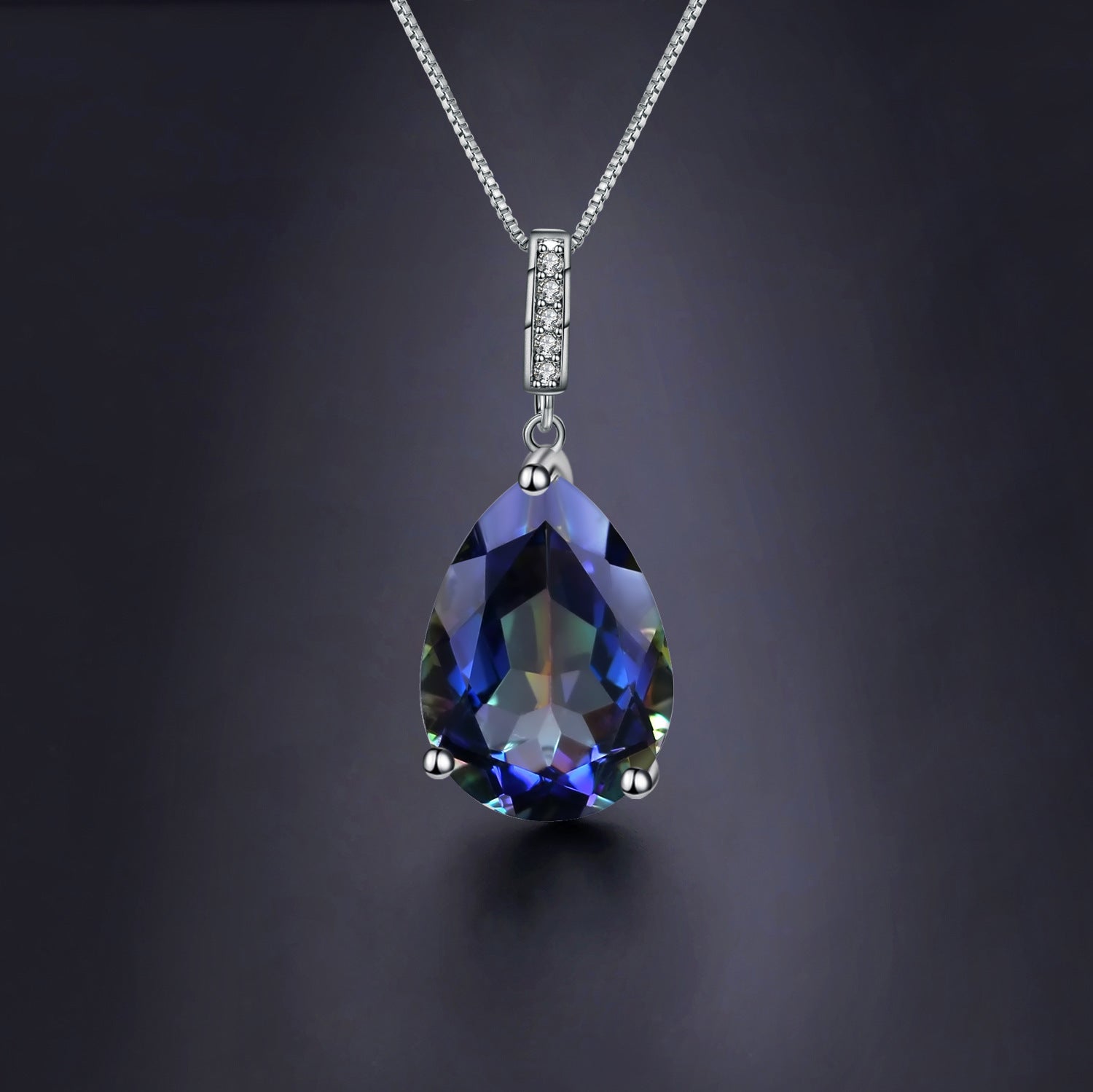 Stand out in any crowd with this elegant European style necklace. Crafted with pear drop natural crystal pendant, this high-end piece is sure to sparkle and dazzle. Its sterling silver chain ensures durability - a must-have for any jewelry collection.