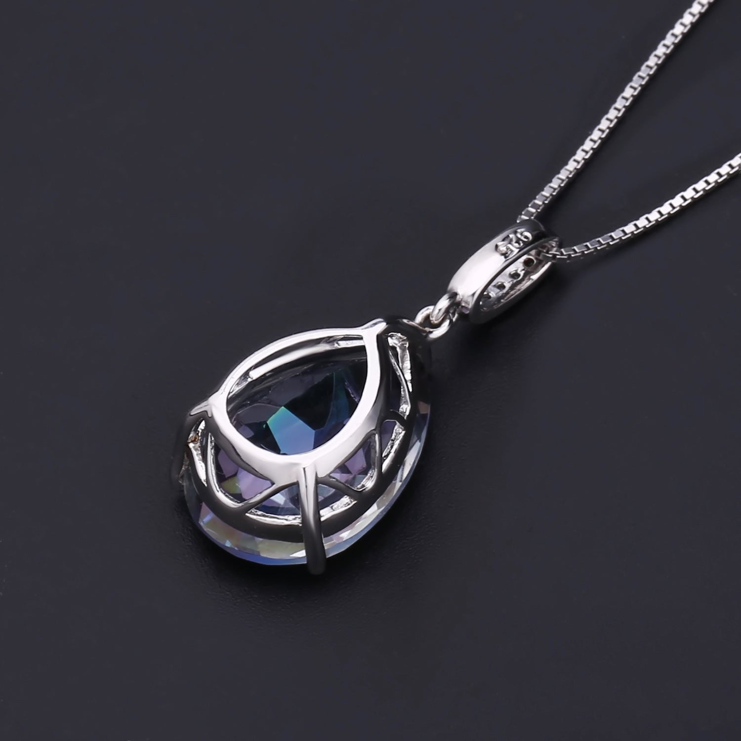 European Style Inlaid Natural Crystal Three Prongs Pear Drop Pendants Silver Necklace for Women