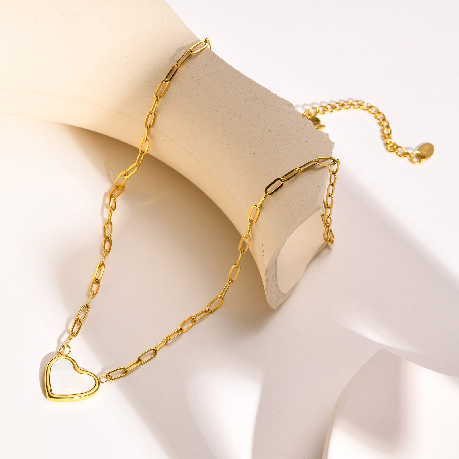 Love Pendant Necklace, Stainless Steel Heart White Mother Shell Necklace, Gold Ladies Fashion Jewelry. Whether you're treating yourself or someone special, this necklace is sure to impress. Don't miss out on the opportunity to own this stunning piece that embodies love and style!