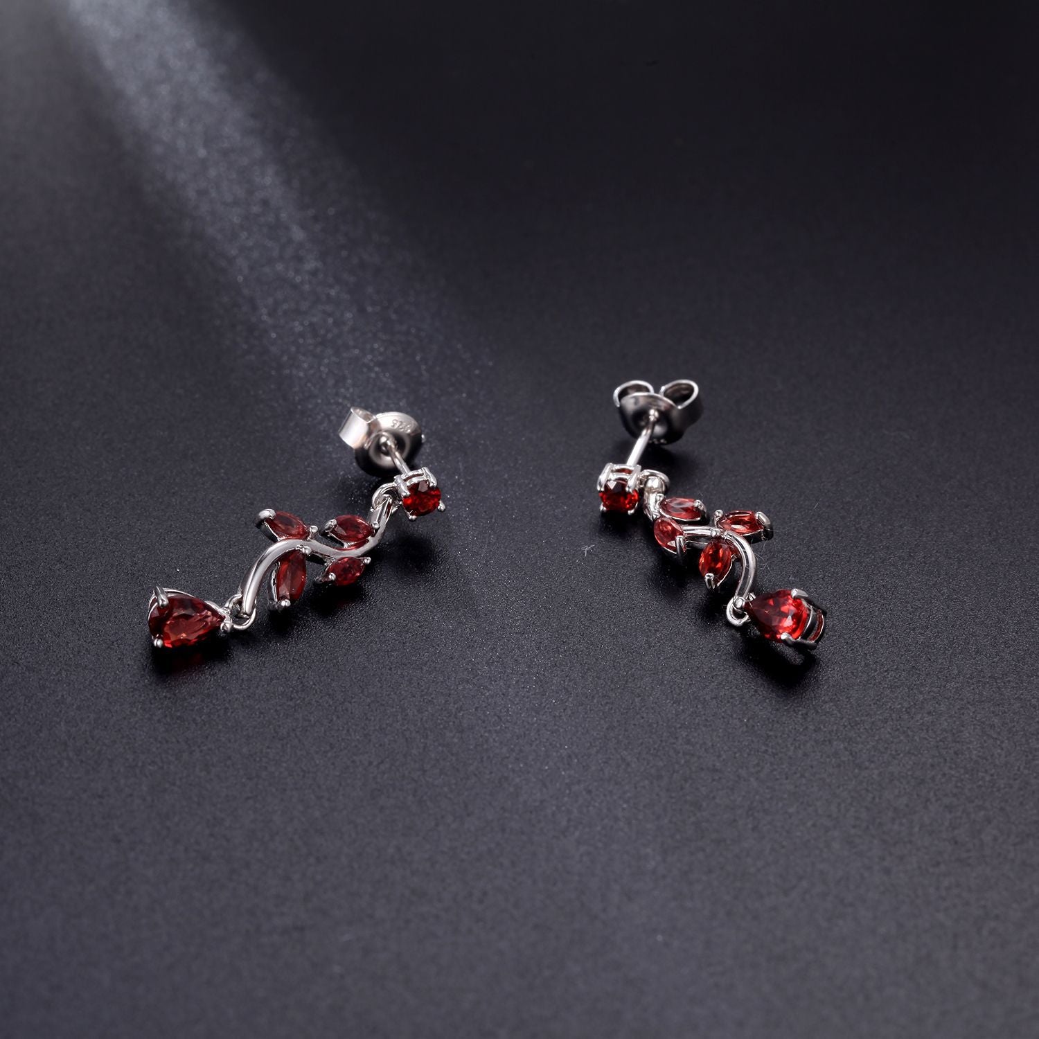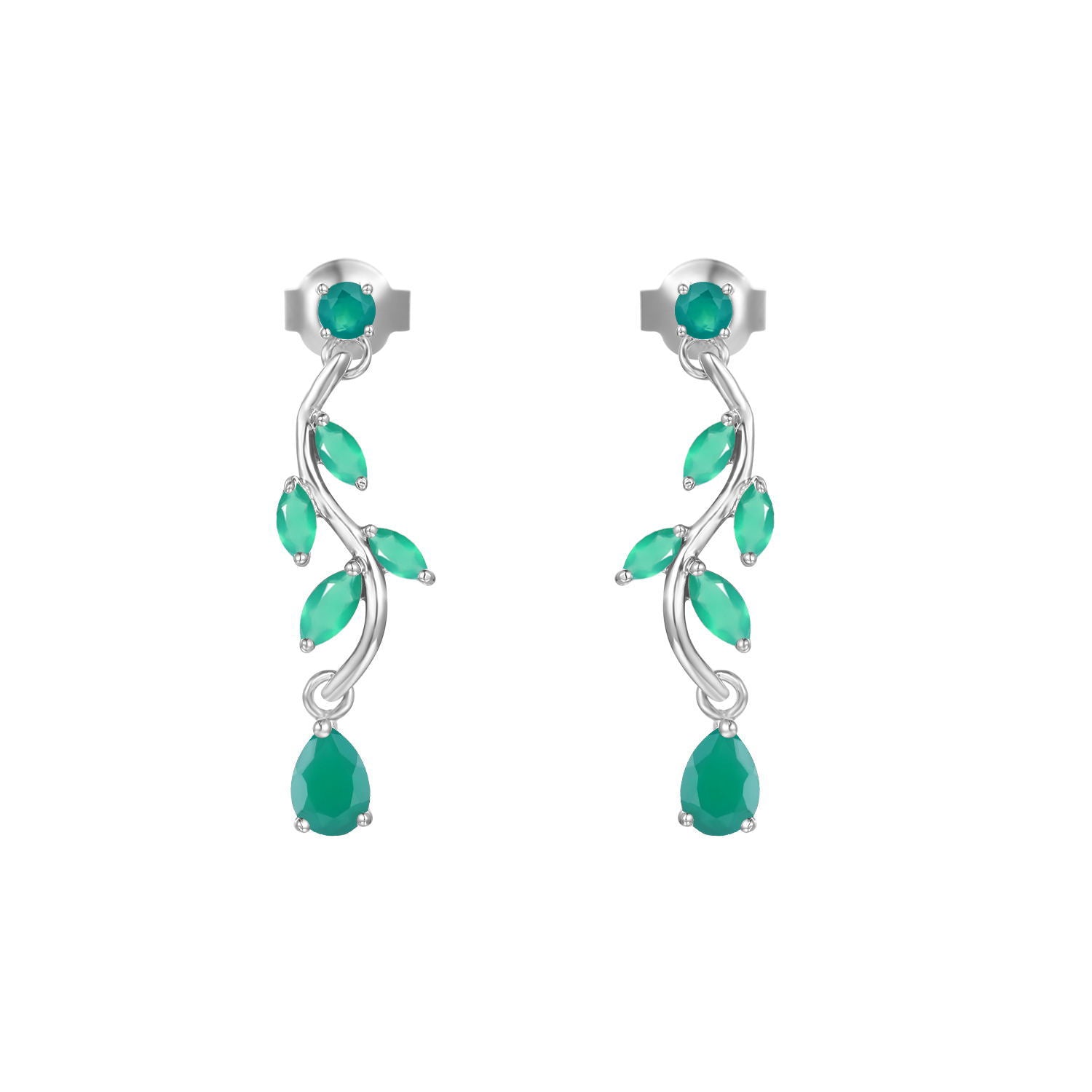 Sag Branch Pear Shape Natural Gemstones Silver Drop Earrings