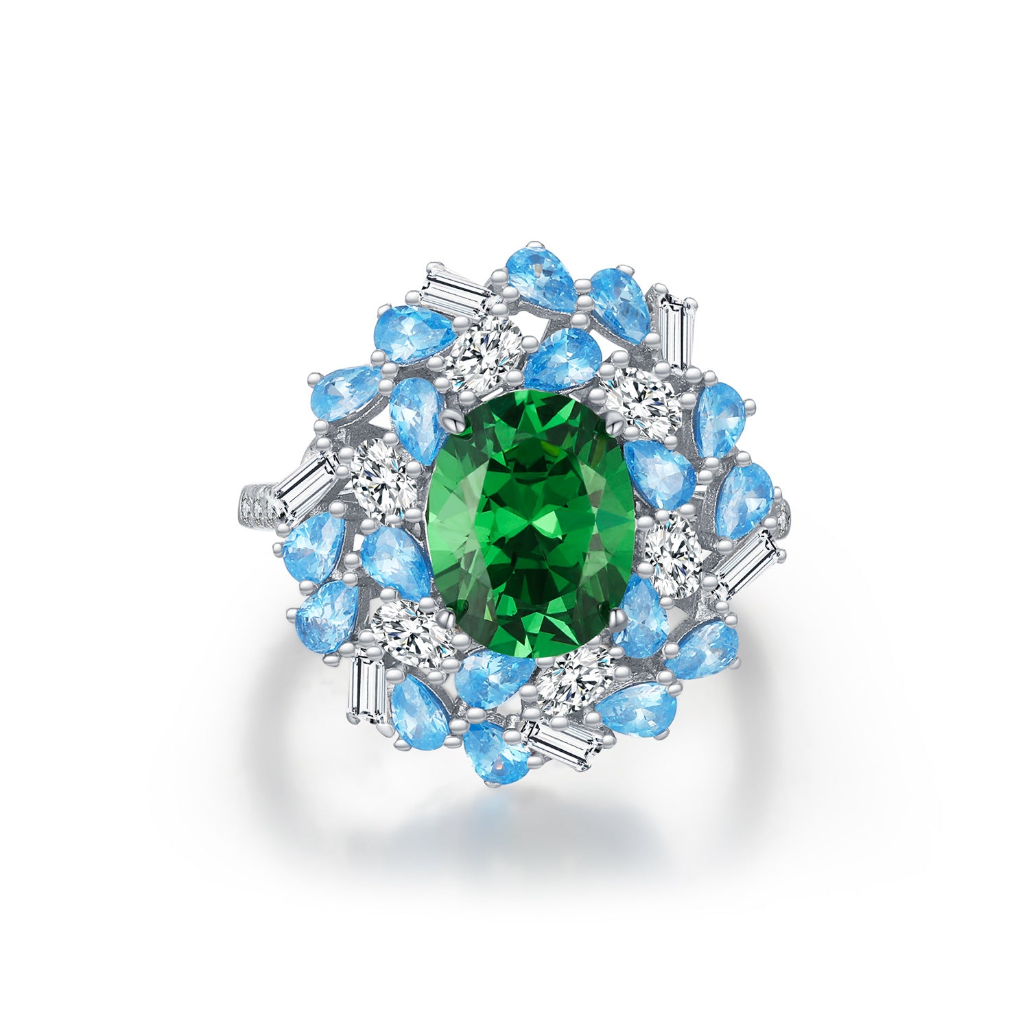 Planderful Gala Fireworks Ring – Elegant Sterling Silver with Imitation Emerald and Zircon