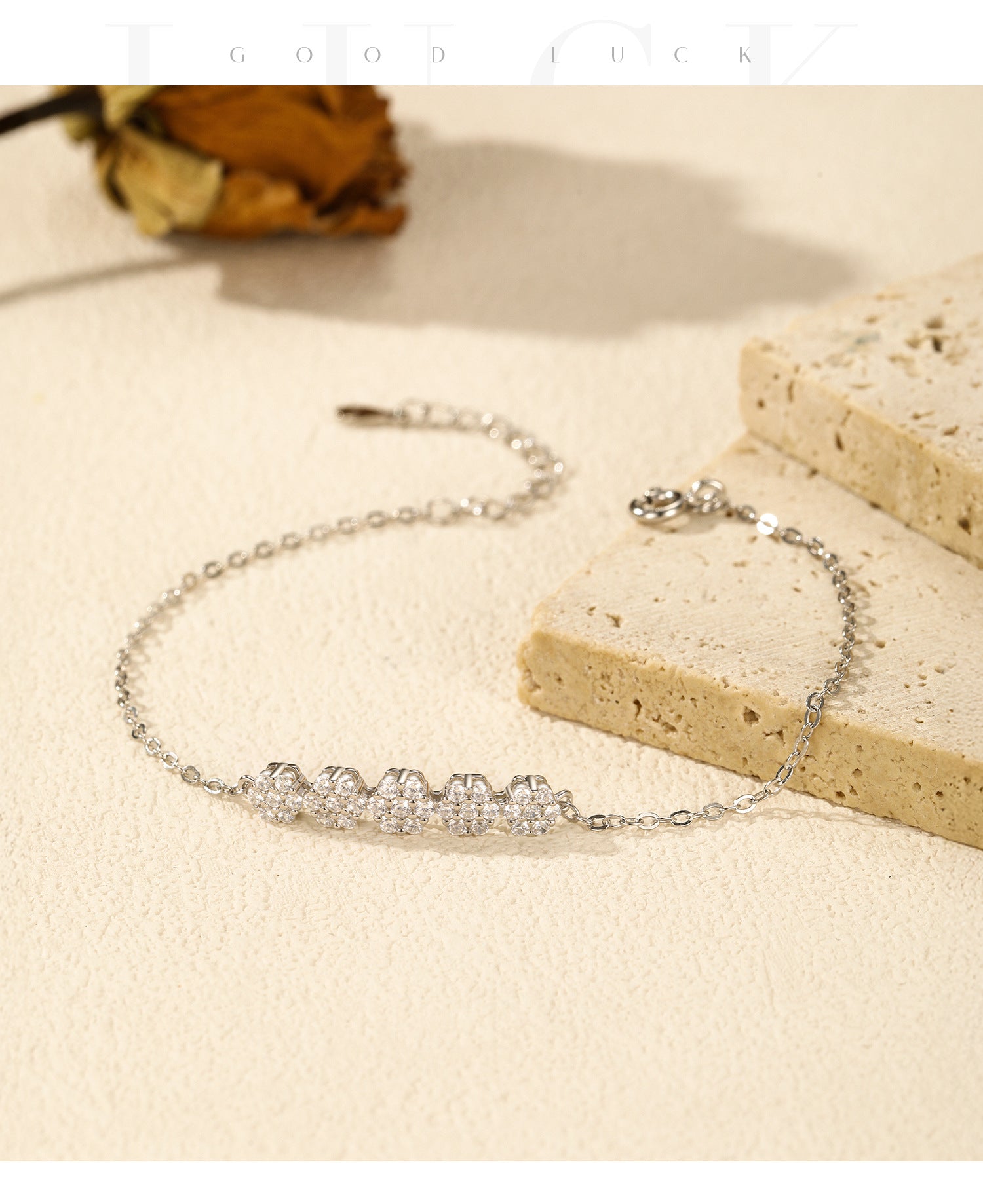 S925 Sterling Silver Japanese and Korean Flower Super Flash Zircon-Set Bracelet by Planderful delivers an enchanting touch of femininity for every occasion. This versatile lady-style jewelry piece seamlessly elevates any outfit, making you shine with elegance.
