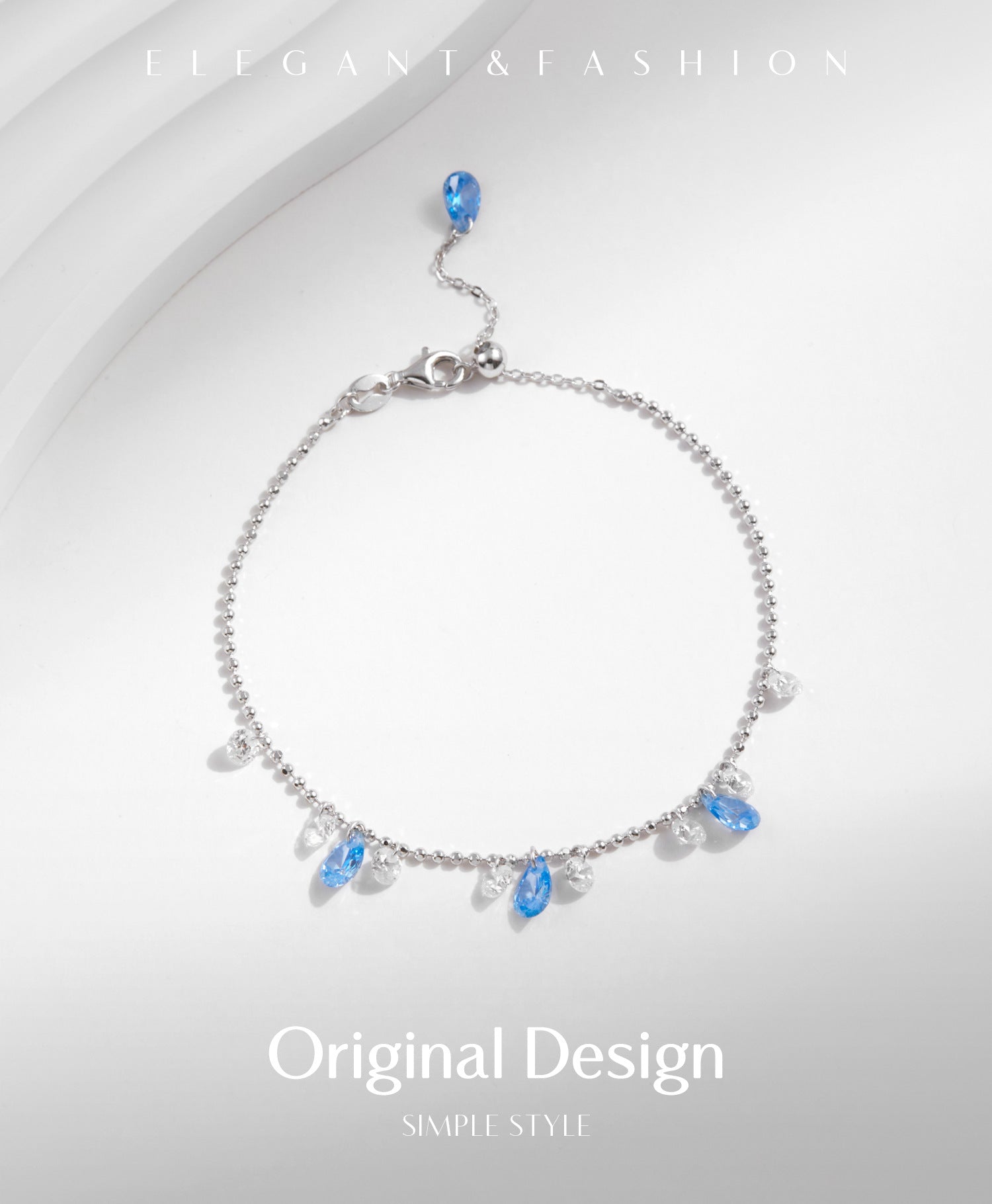 s925 Sterling Silver Japanese and Korean High-Value Exquisite Imitation Aquamarine Shining Broken Zircon Beanie Bracelet by Planderful delivers a stunning style statement for women seeking elegance and charm.
