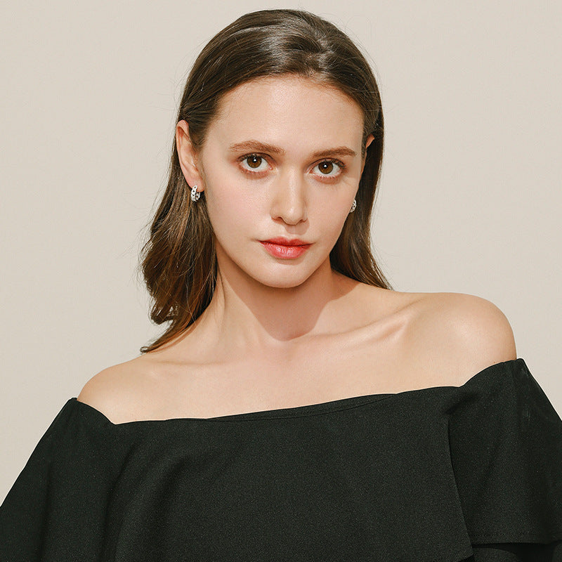 Luxurious S925 Sterling Silver Earrings with Zircon Embellishments