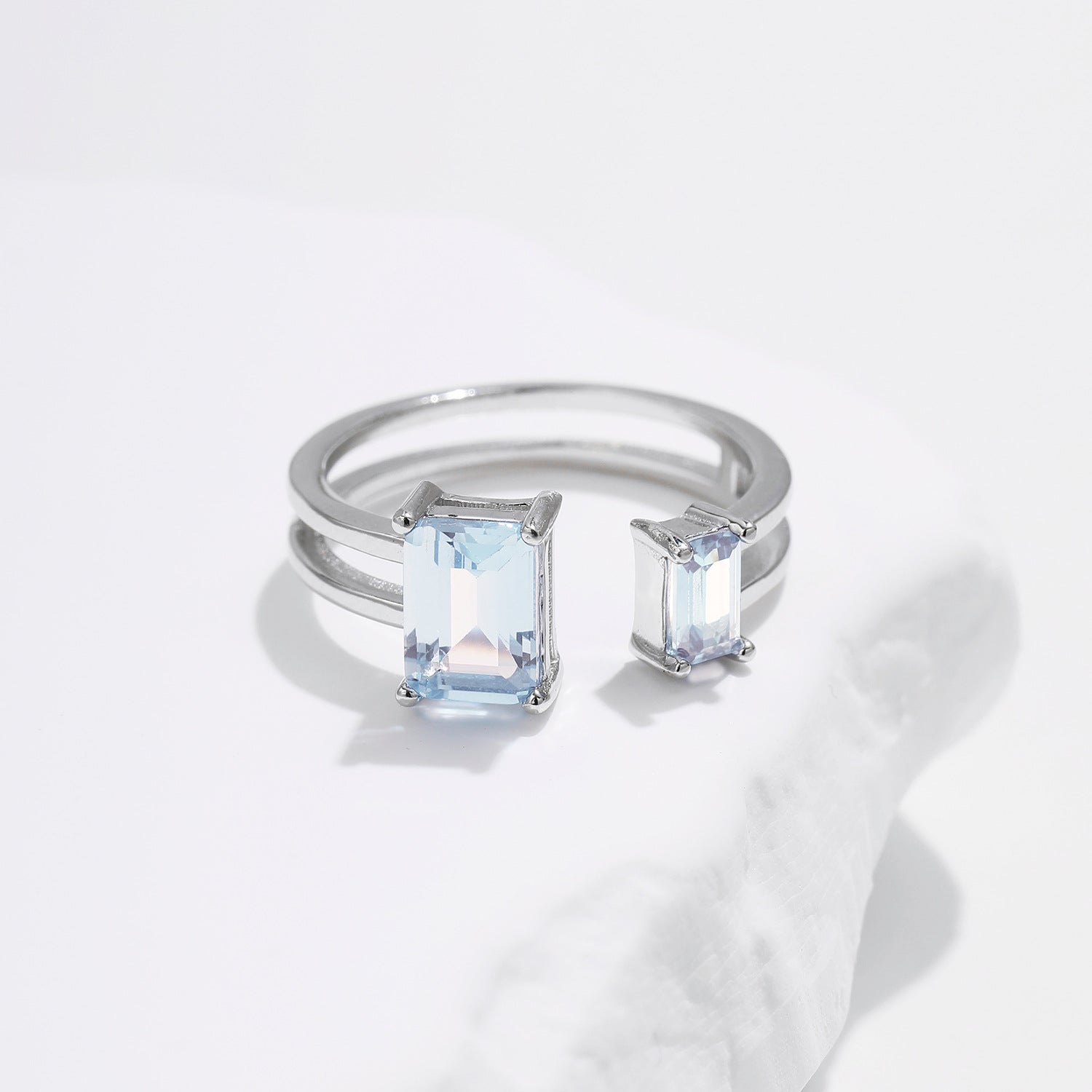 S925 Sterling Silver Double-Layer Line Super Flash Imitation Aquamarine Ring by Planderful delivers a stunning sparkle and elegance for every occasion.