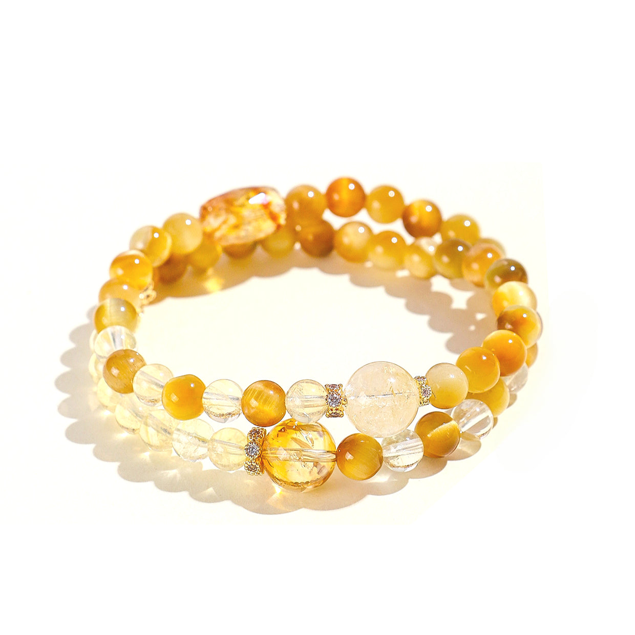 The Natural Huangta Crystal Double Circle Beaded Lucky Bracelet by Planderful delivers stunning elegance and positive energy for everyday wear. This exquisite piece not only enhances your fashion statement but also serves as a symbol of good fortune and prosperity.
