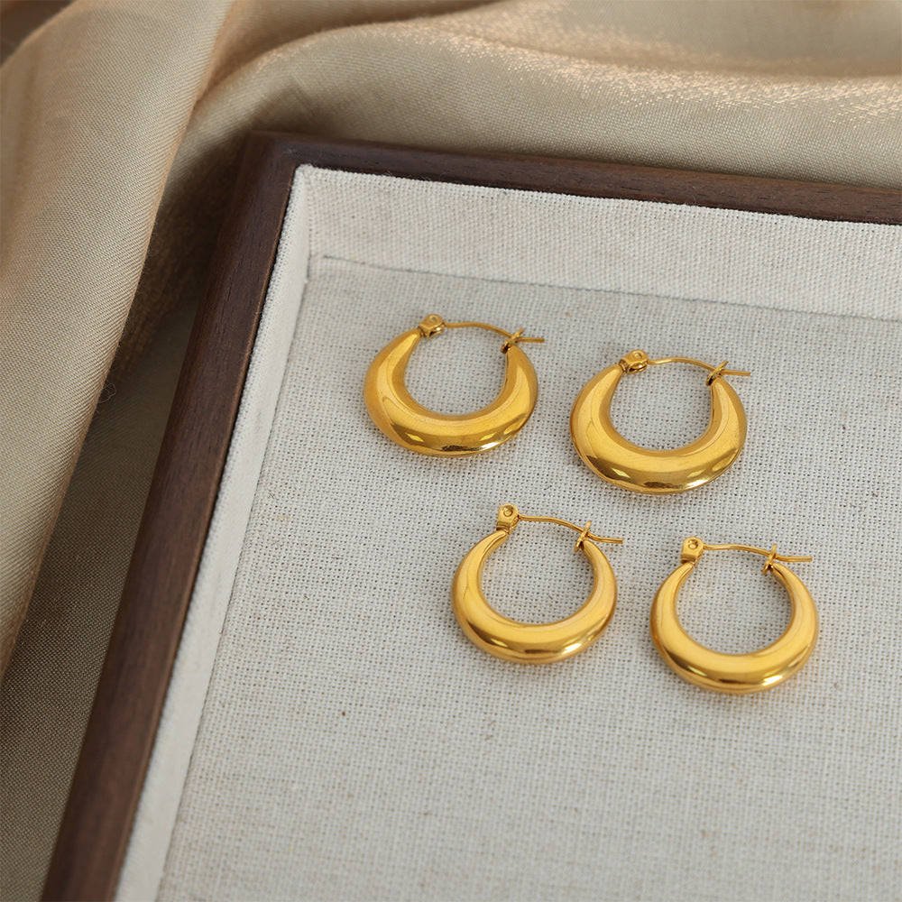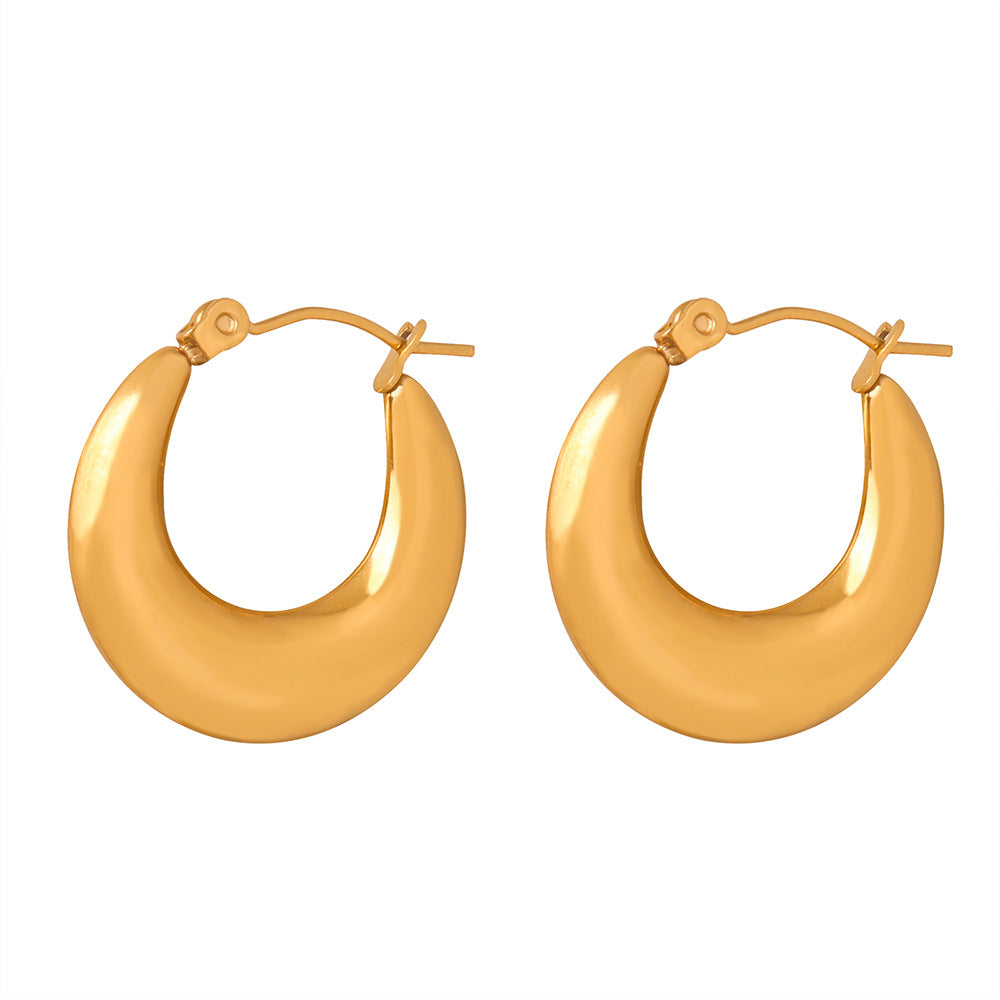 Elevate your look and express your personality with our New Fashion Geometric U-Shaped Earrings. Made from high-quality titanium steel and featuring a striking gold-plated finish, these earrings offer a perfect balance of luxury and simplicity. The unique niche design sets you apart from the crowd, making a bold statement wherever you go. Whether you're heading to work, a social event, or a night out, these earrings are the ideal accessory to complement your style. Lightweight and comfortable, they can be worn all day without any discomfort. Add a touch of elegance to your outfit and showcase your individuality with these exquisite cross-border jewelry pieces.