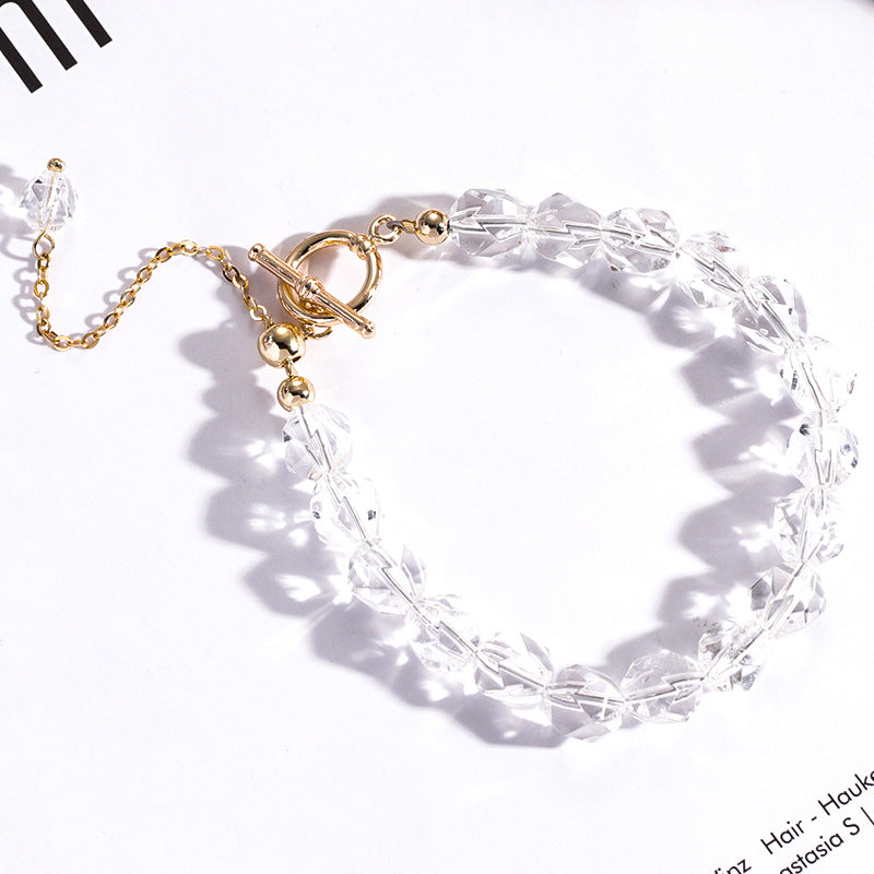 Introducing our New Korean Women's Simple Cut White Crystal Bracelet, a perfect blend of Korean and European-American fashion. Elevate your look with this stunning piece from our Fortune's Favor Collection.