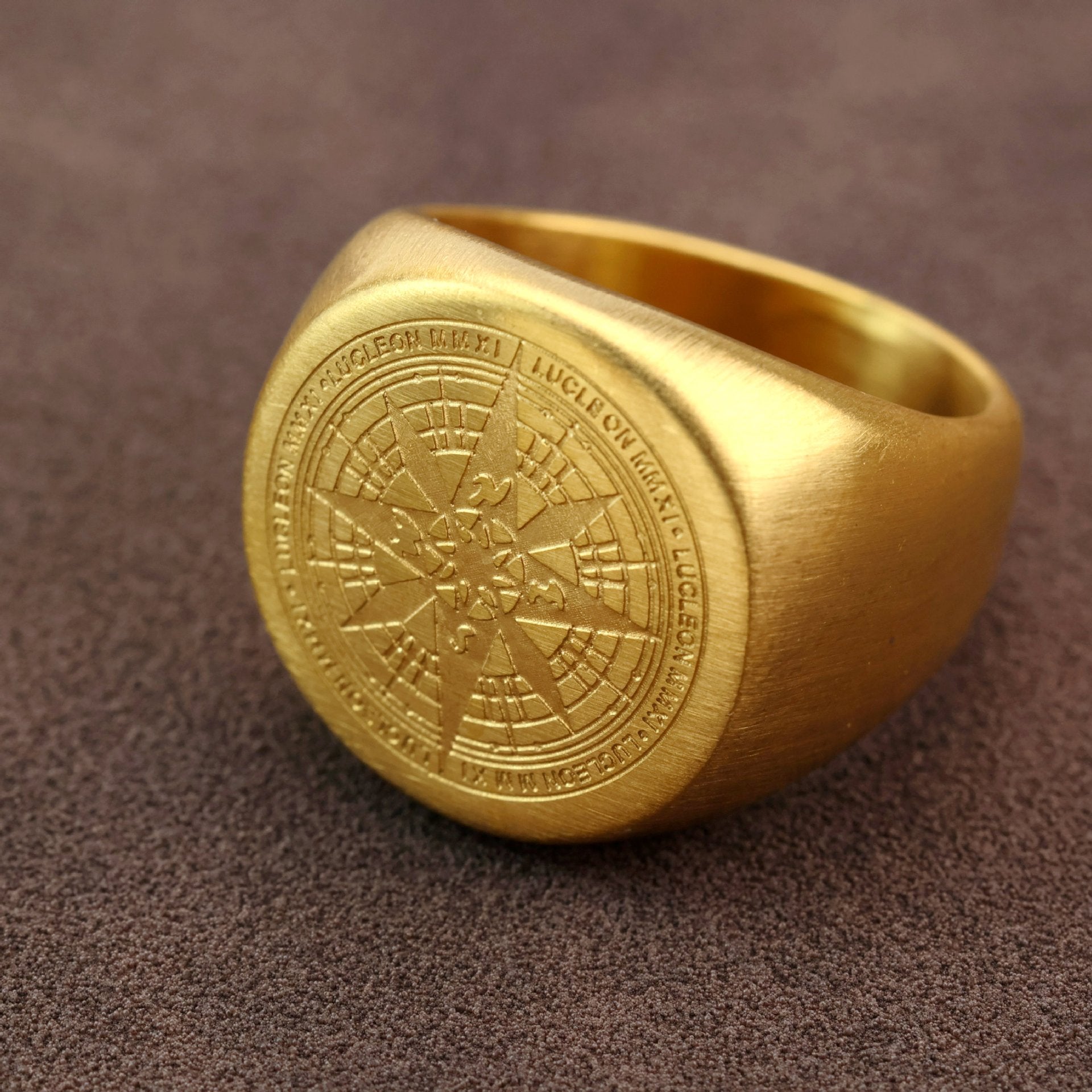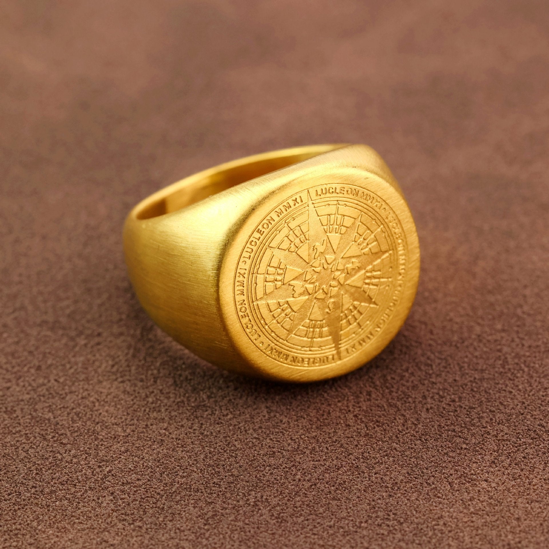 • Design: engraved compass motif