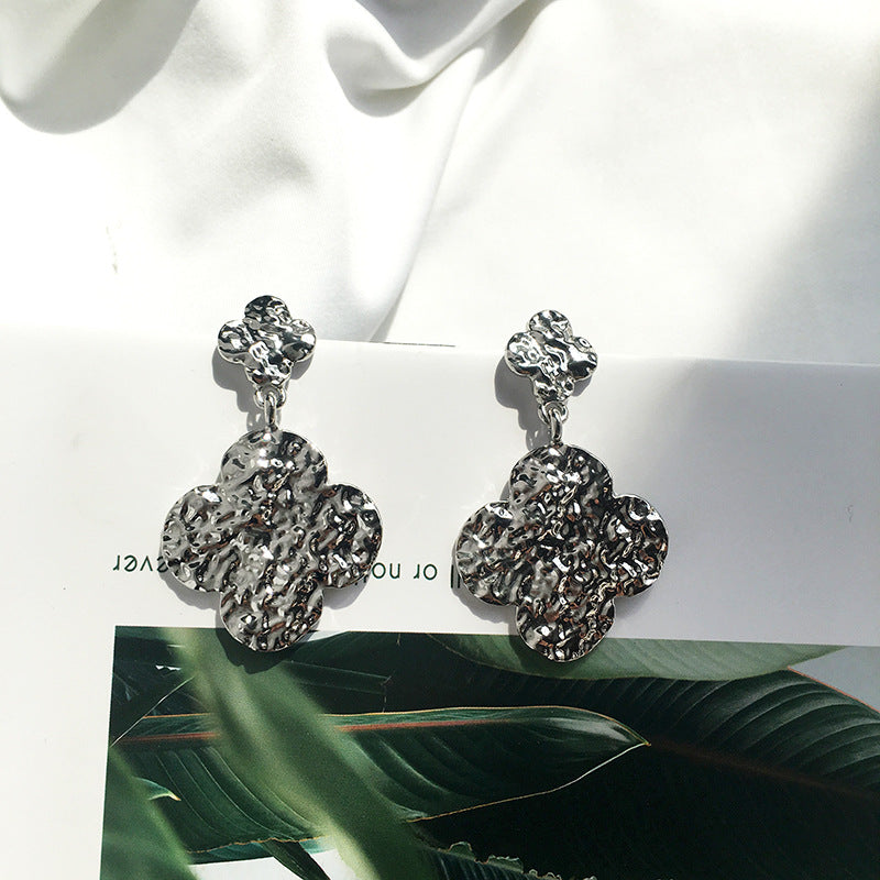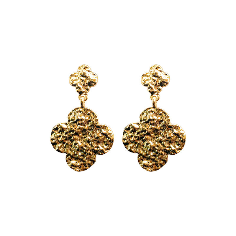 Unleash your fashion persona with our latest Vienna Verve collection, featuring the stunning European and American hammer patterned alloy four leaf clover earrings. Elevate your style with these cross-border geometric earrings that exude an air of elegance and sophistication.