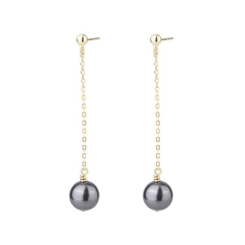 This earring is a stylish and elegant accessory with a black pearl pendant, symbolizing wisdom and mystery. It complements the long tassels and adds a sense of dynamism and agility.