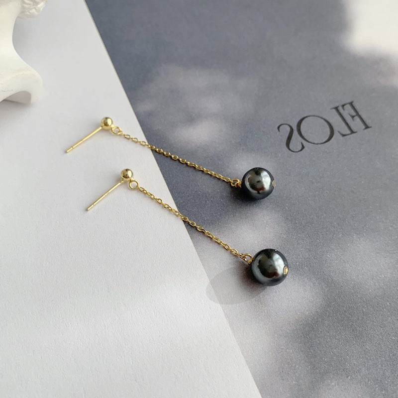 Black Pearl Long Tassel Silver Drop Earrings for Women