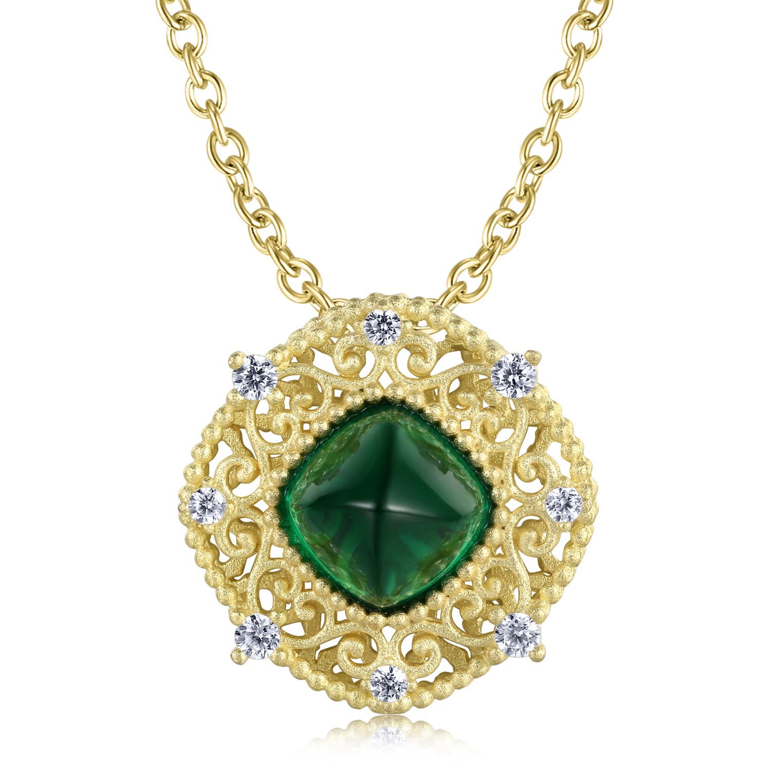 This Luxury Hollow Pattern Square Pendant Necklace is crafted from sterling silver plated in gold and inlaid with a square Green Zircon in its center for an extra touch of shine. The intricate gorgeous pattern makes it an elegant piece suitable for any formal occasion.