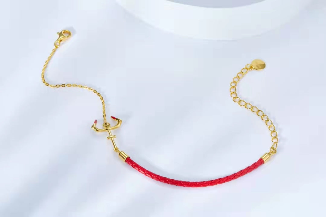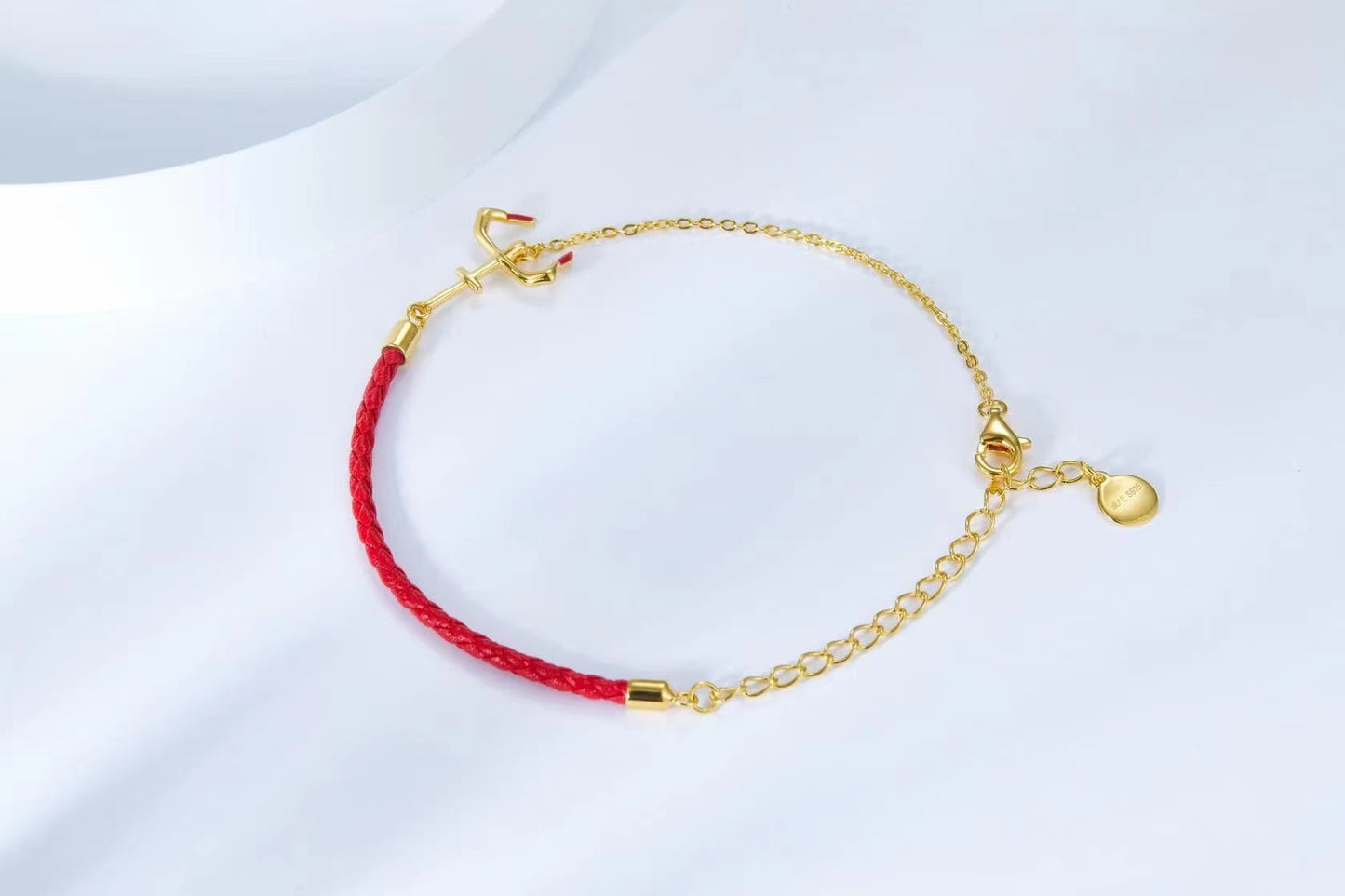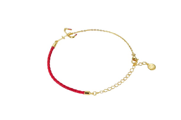 This Golden Chain with Enamel Bracelet for Women is perfect for any occasions. Featuring a unique trident, golden sterling silver chain, and a beautiful red rope, it offers a luxurious feel and an eye-catching style. Beautifully designed and crafted to perfection, this piece is ideal for adding an elegant touch to any outfit.