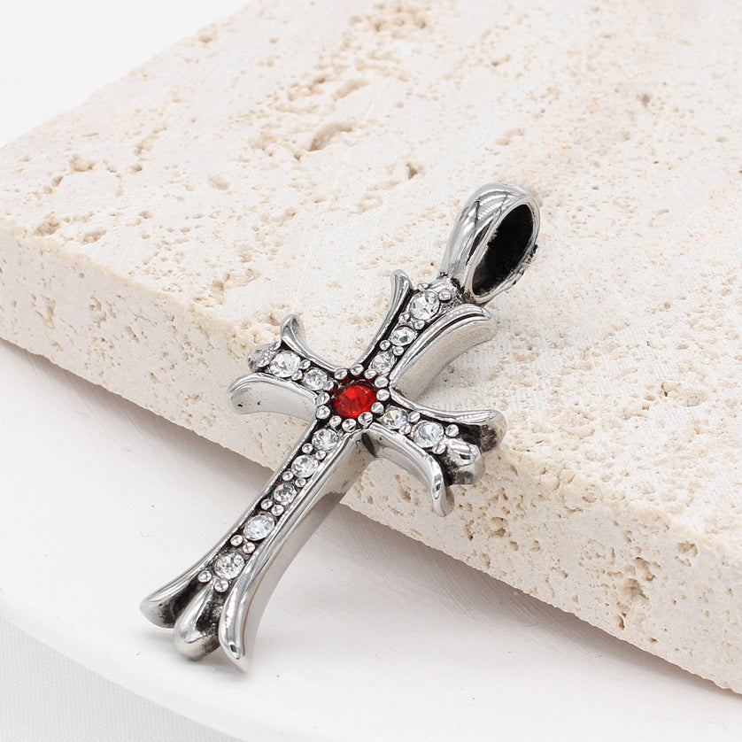 Cross Flower Zircon Titanium Steel Pendant for Men