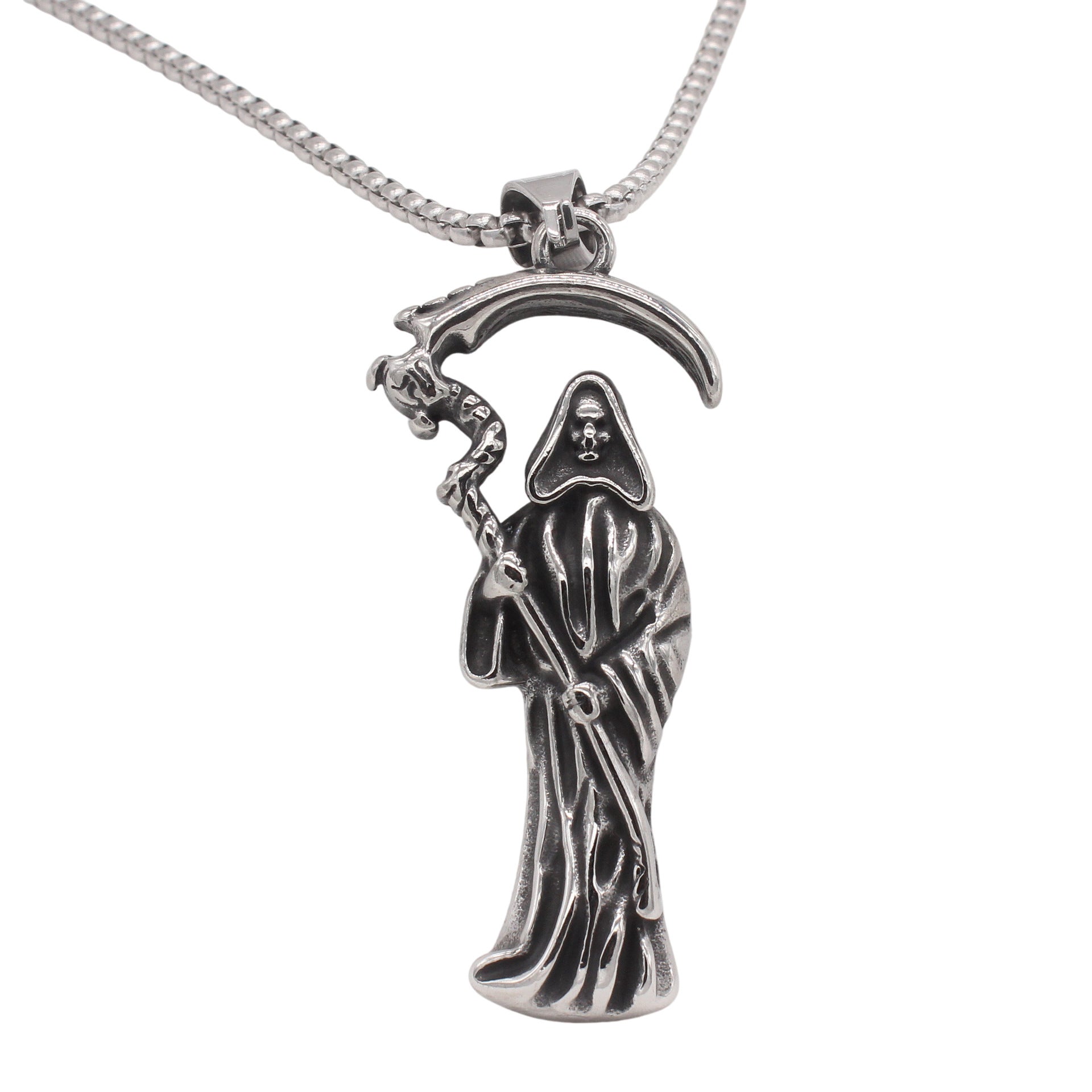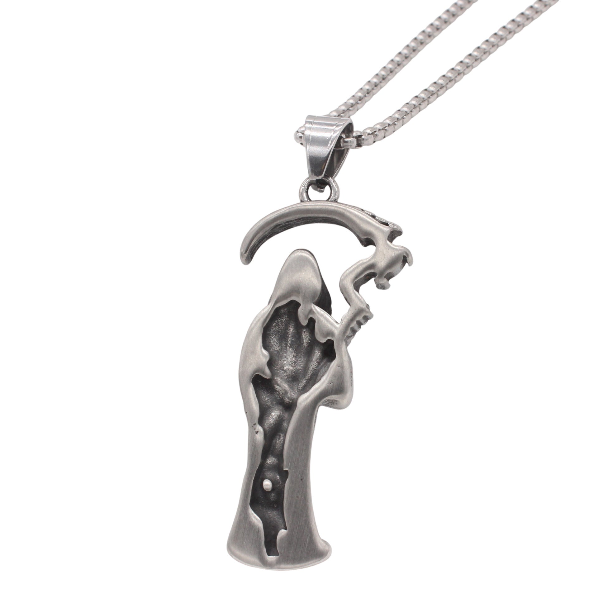 Planderful Jewelry Mens Skull Pendant in Titanium Steel, Retro Death Sickle Design